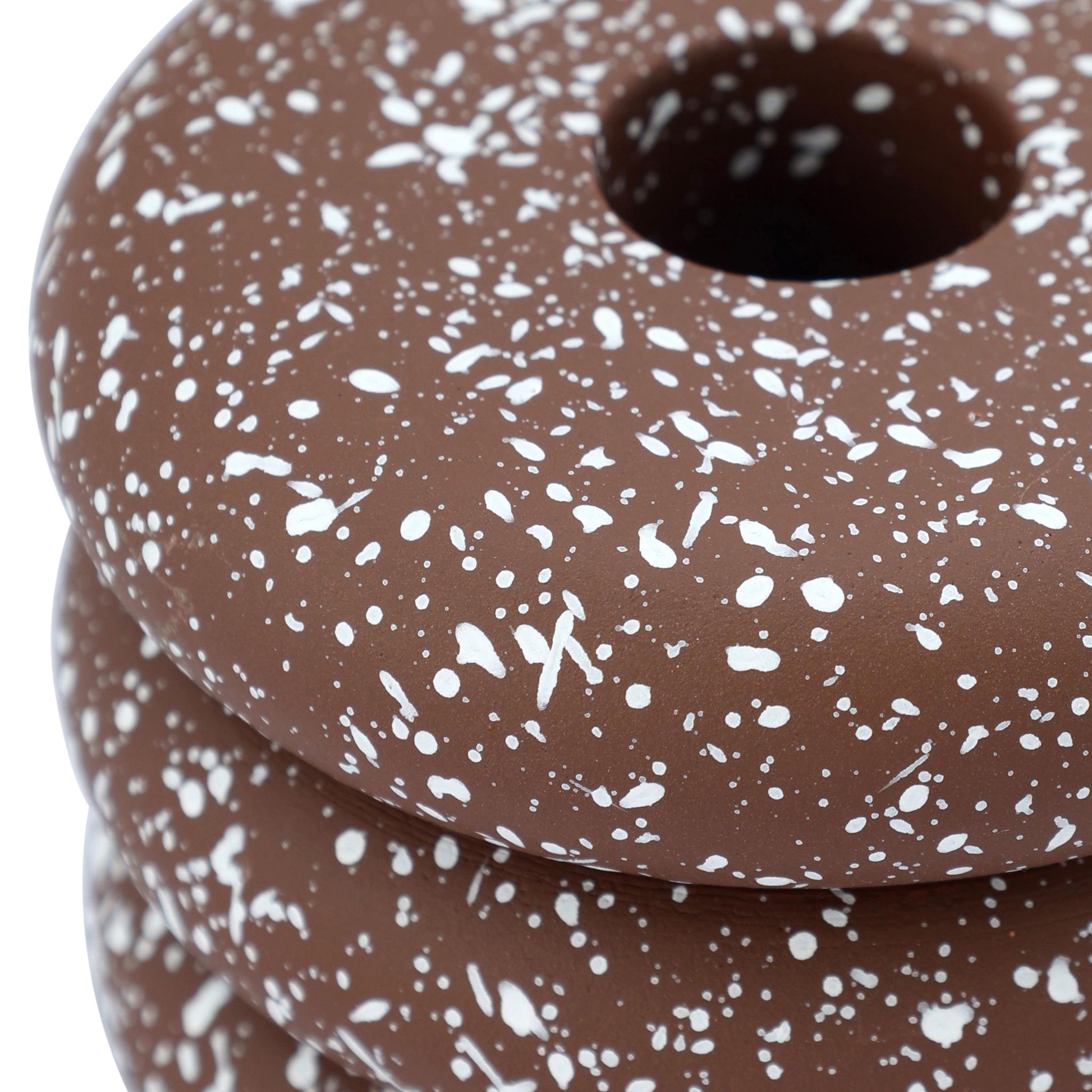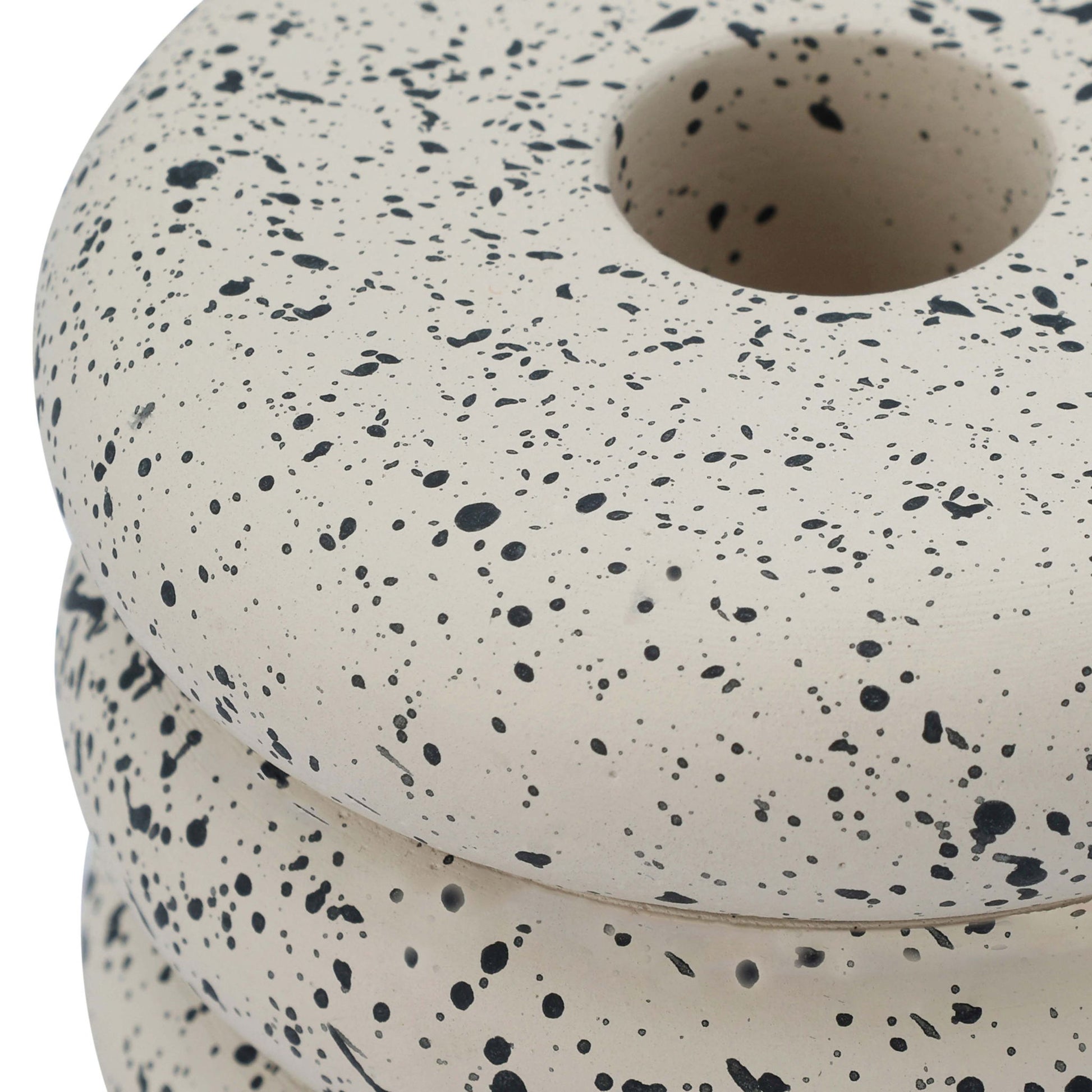 Stacked ring forms and a speckled finish give the Gabby Candleholder an edgy yet grounded presence. Available in green, rust, or cream, it channels a zen-inspired wabi-sabi style, transforming any taper into a striking sculptural moment.