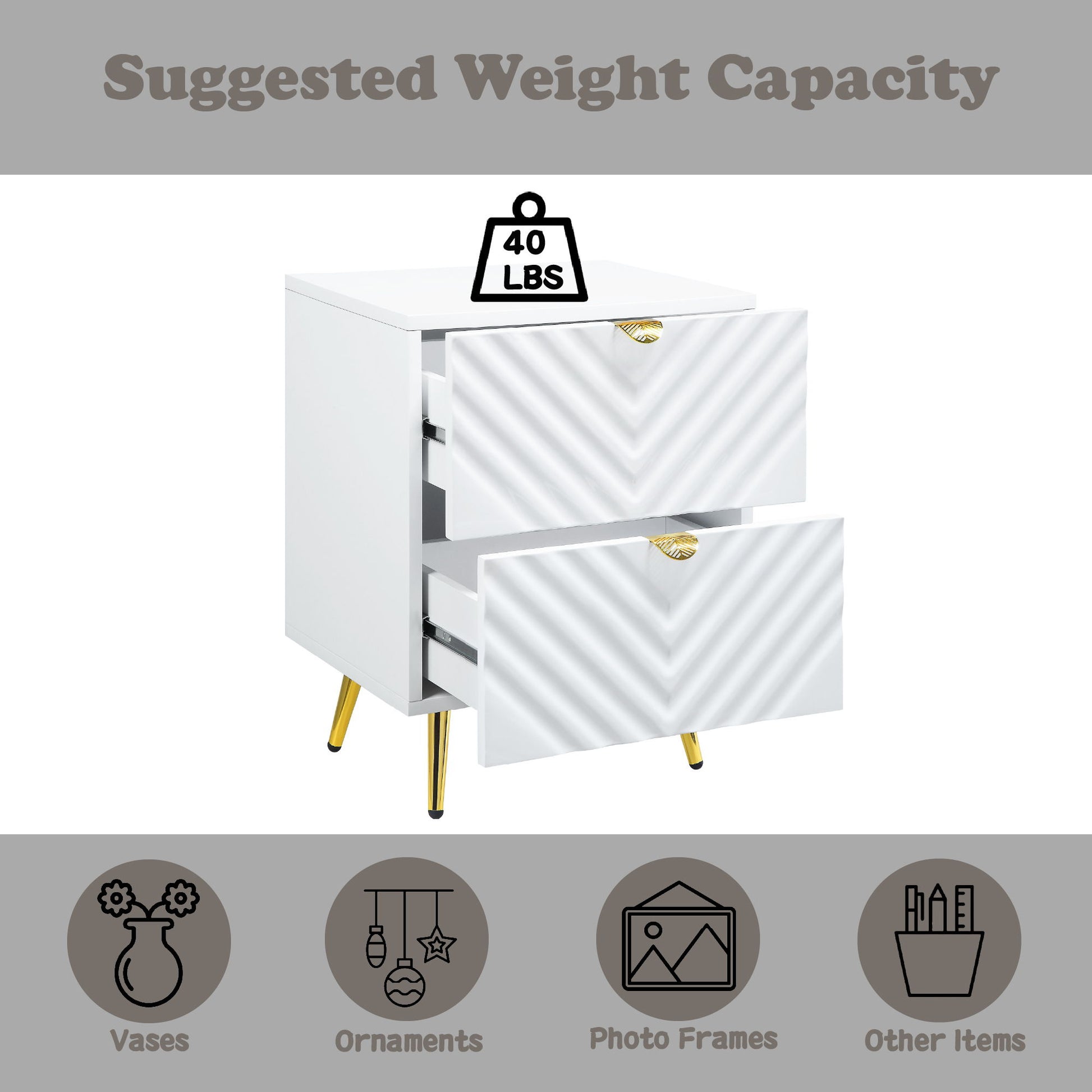 • Sturdy Construction: With metal side drawer glides and a weight limit of 66 lbs on the top and 20 lbs per drawer, this nightstand offers both functionality and stability.