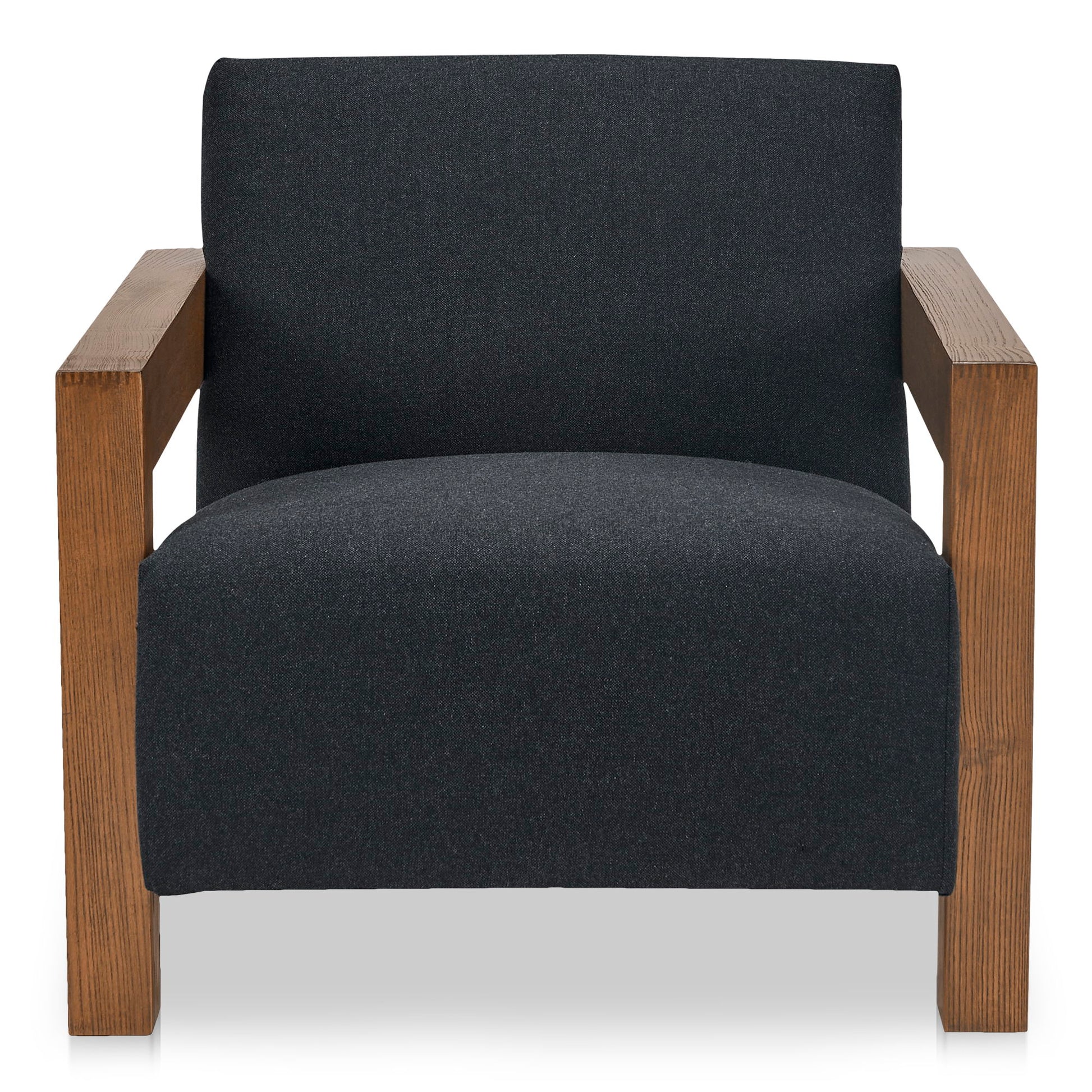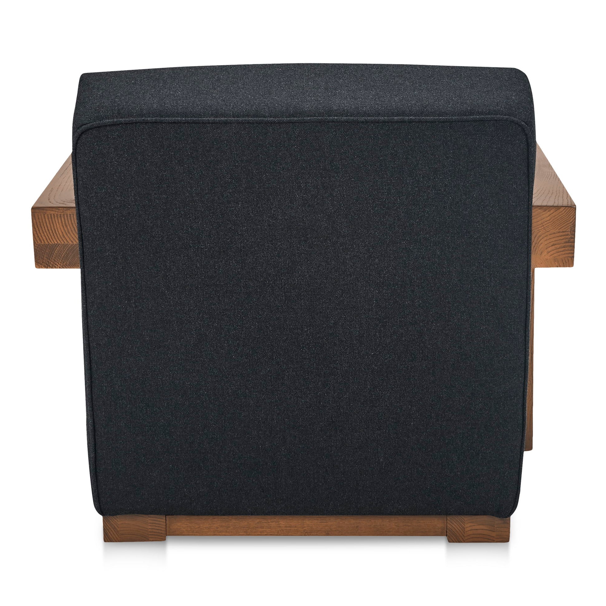 Crafted with a solid oak frame and detailed in a warm, aged stain highlighting its expressive grain, the Garnet lounge chair showcases a soft wool blend upholstery for a touch of heritage feel. Its blocky form blends traditional and retro aesthetics, creating a warm, inviting piece that complements any setting.