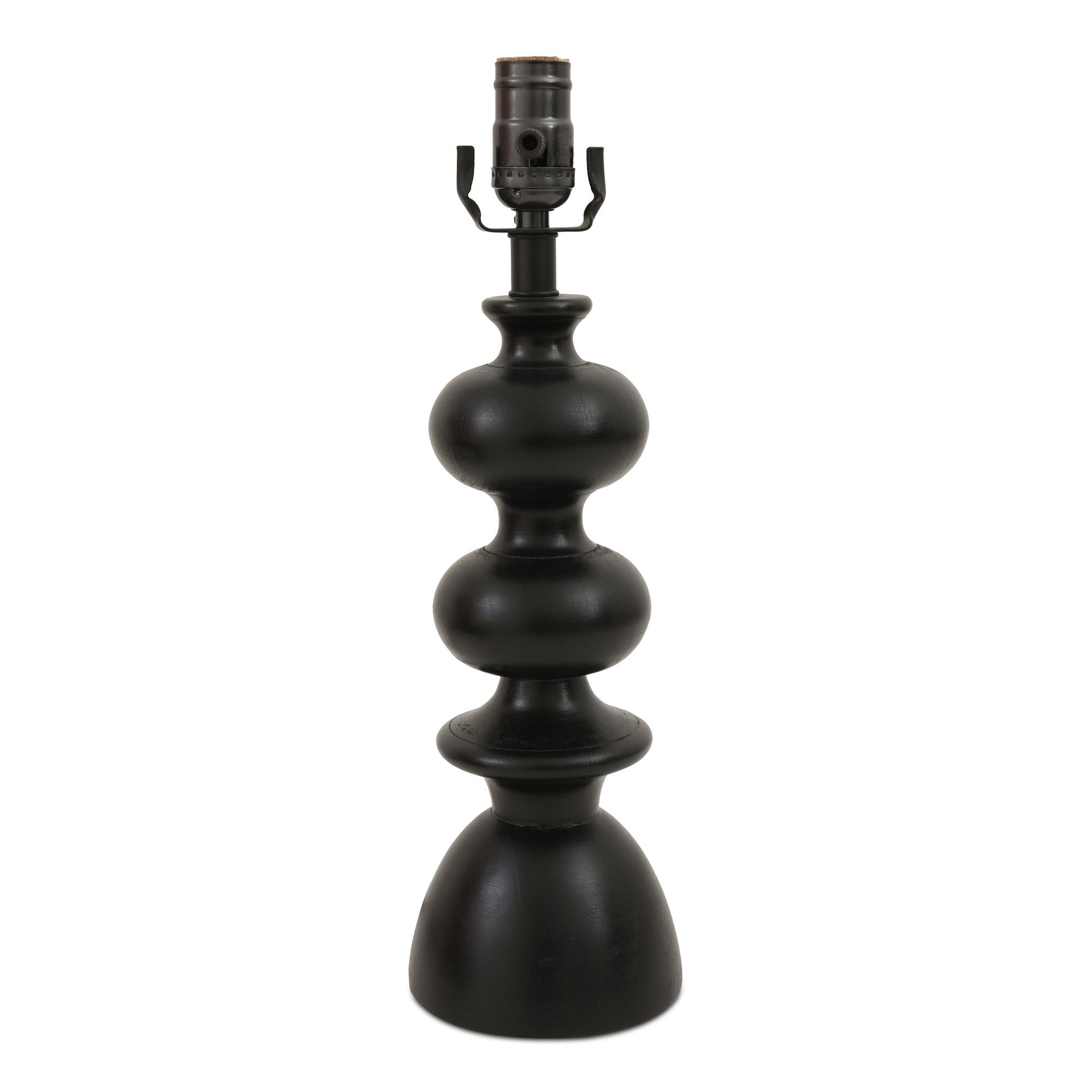 Inspired by vintage table legs for an heirloom appeal, the Gwen table lamp features black-finished mango wood and a spherical form masterfully achieved by the turned wood base. A textured cotton shade adds dimension to the smooth, organic base.