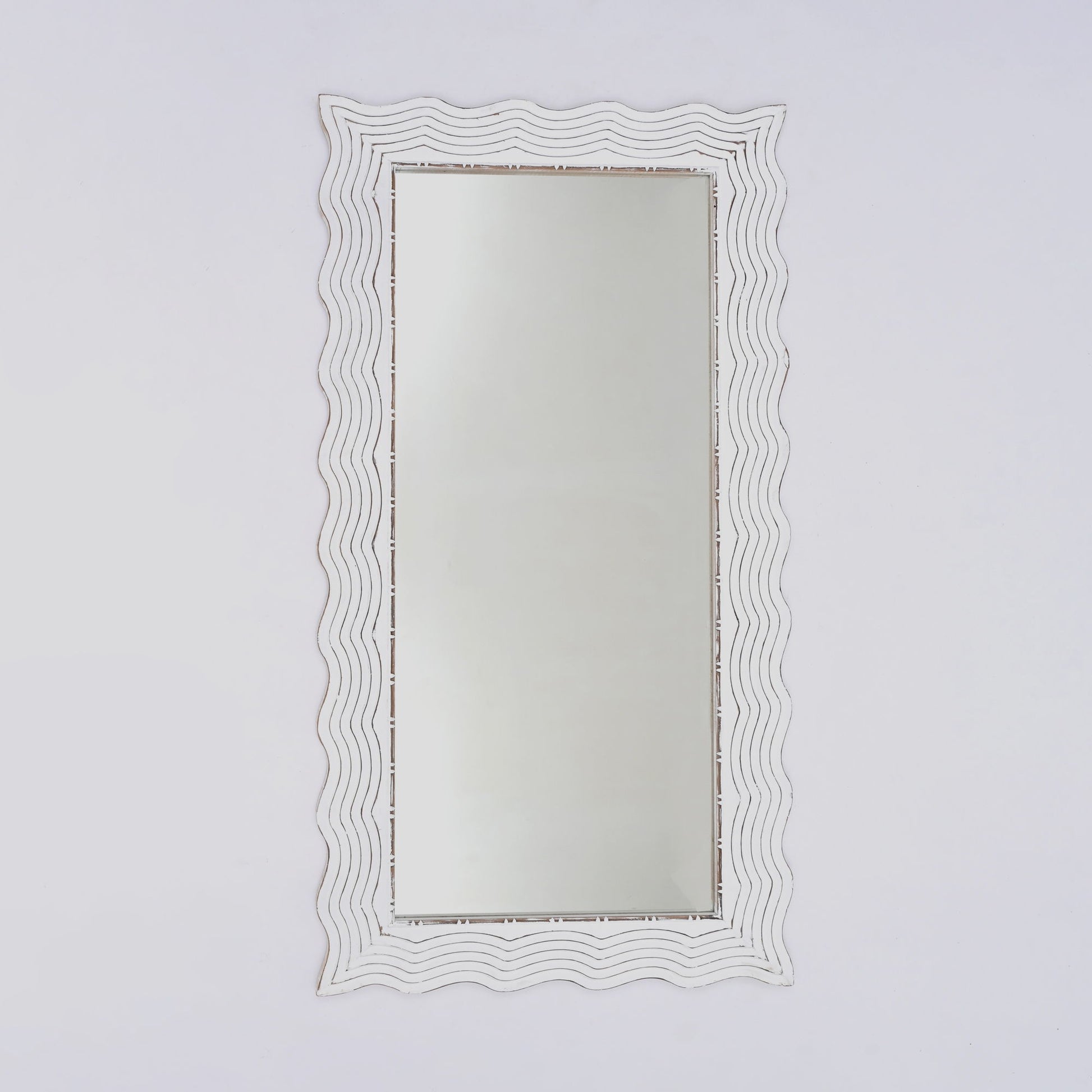 Handcarved Wave Design Rectangle Mirror Accent Enhancing Space - Antique White