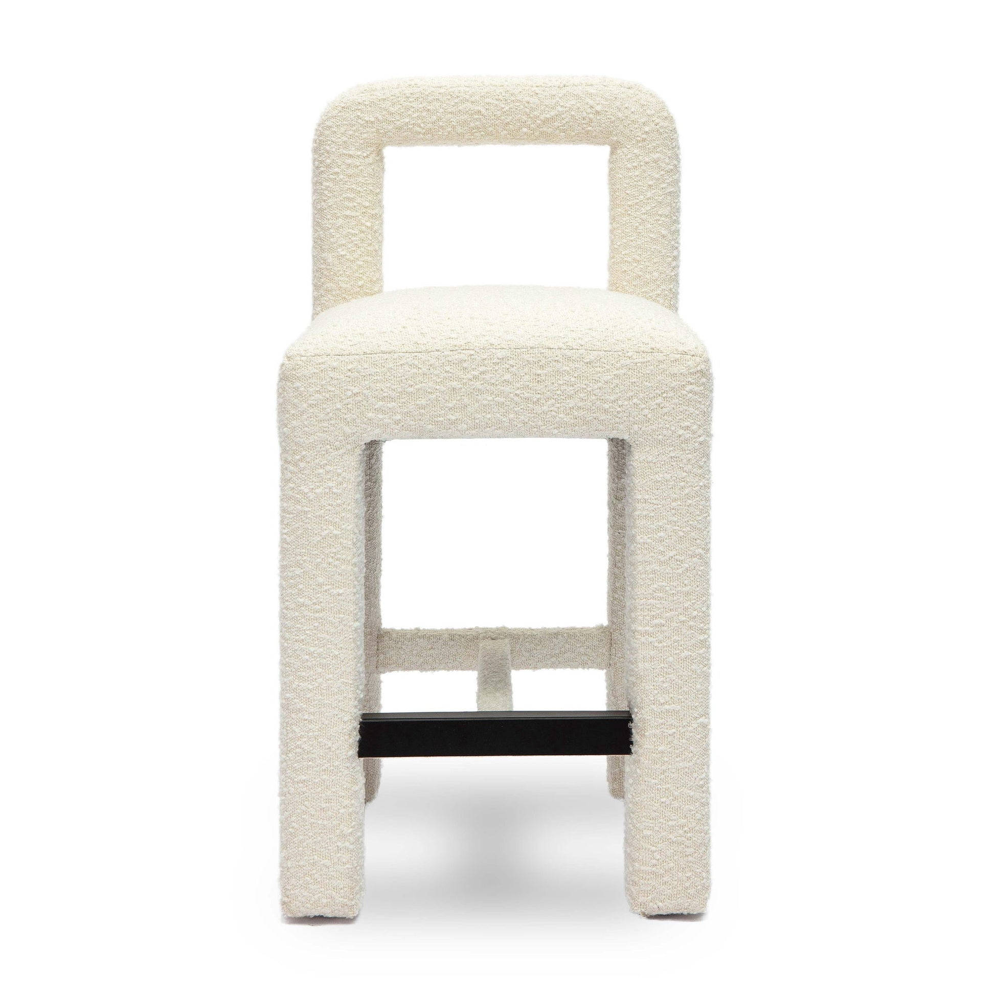 The modish Hazel Counter Stool features clean lines and a textural boucle fabric to transform your kitchen. Supported by a sturdy pine wood frame with plush foam seats for ultimate comfort, this stool is the perfect decorous yet practical piece that your dining experience needs!