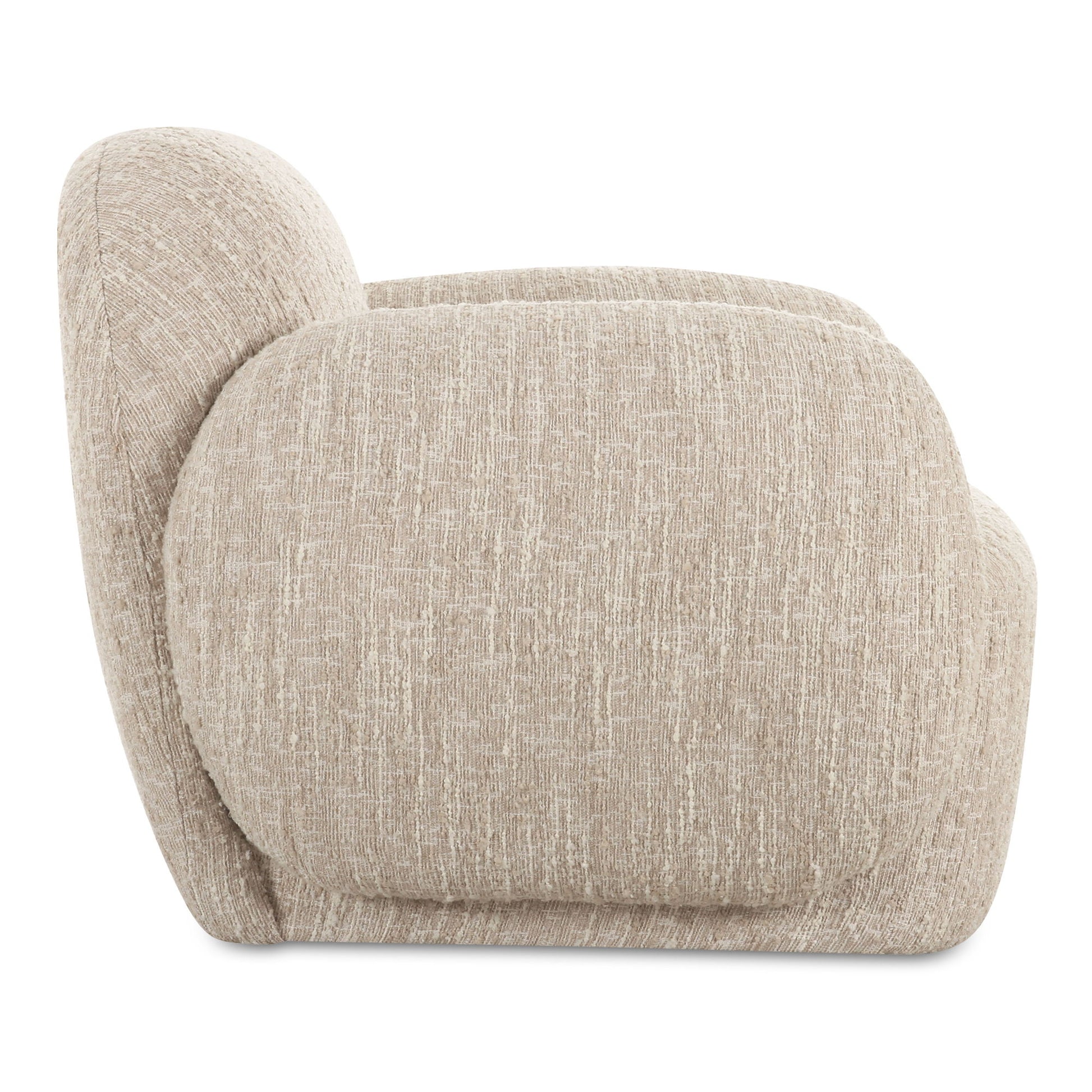 The Hazel lounge chair embraces minimalist, understated elegance with its low-profile, modernist silhouette. Wrapped in exaggerated boucle fabric, it offers a distinct tactility and comfort. The bold, curved arm design makes a stylish statement, harmonizing with the sleek form to create an inviting focal point in any setting.