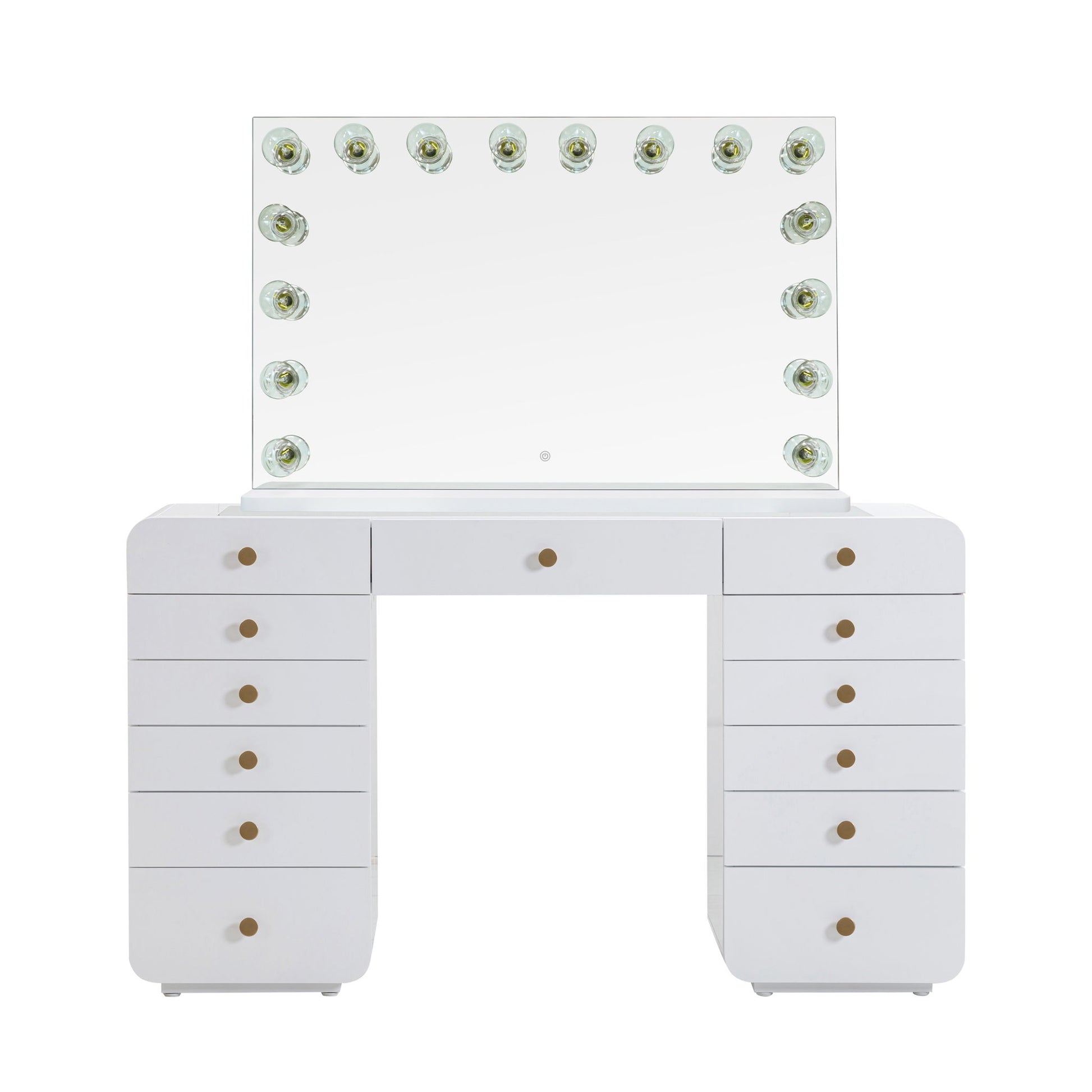 Hollywood - 13-Drawer Desk With Jumbo Vanity Mirror - White