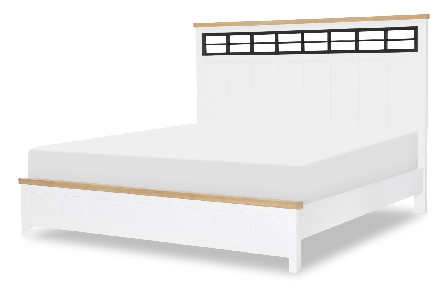Create a space that feels both timeless and refreshingly new with the Horizons bedroom collection. Blending classic Farmhouse style with clean lines and modern function,, this collection is all about comfort,, charm,, and effortless beauty. Finished in a crisp with warm Natural Oak accents,, Horizons brings light and softness to your room while highlighting the natural textures of Oak veneer and Select Hardwood Solids. The look is finished with Iron Black Hardware for a bold,, rustic contrast that adds just the right amount of edge. At the heart of the collection is the Panel Bed,, featuring an elegant iron black fretwork design on the headboard - an eye-catching detail that brings texture and personality to your space. Available in twin,, full,, queen,, and king,, there's a perfect fit for every size and style of home. Thoughtful craftsmanship includes French dovetail drawer construction and ball bearing metal side glides,, ensuring each drawer opens smoothly and stands up beautifully to everyday use.