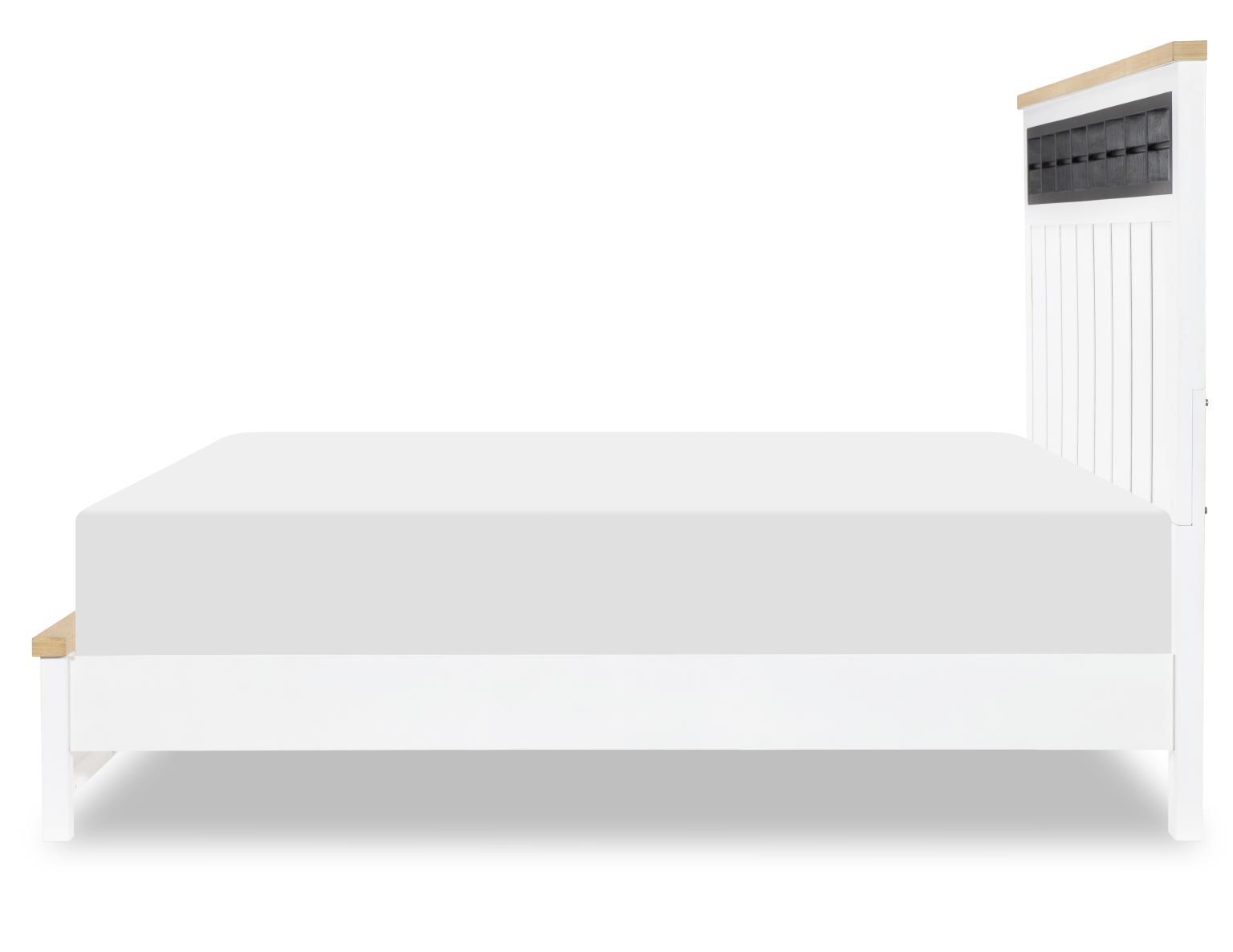Horizons - Queen Complete Panel Bed - Pure White / Natural Oak