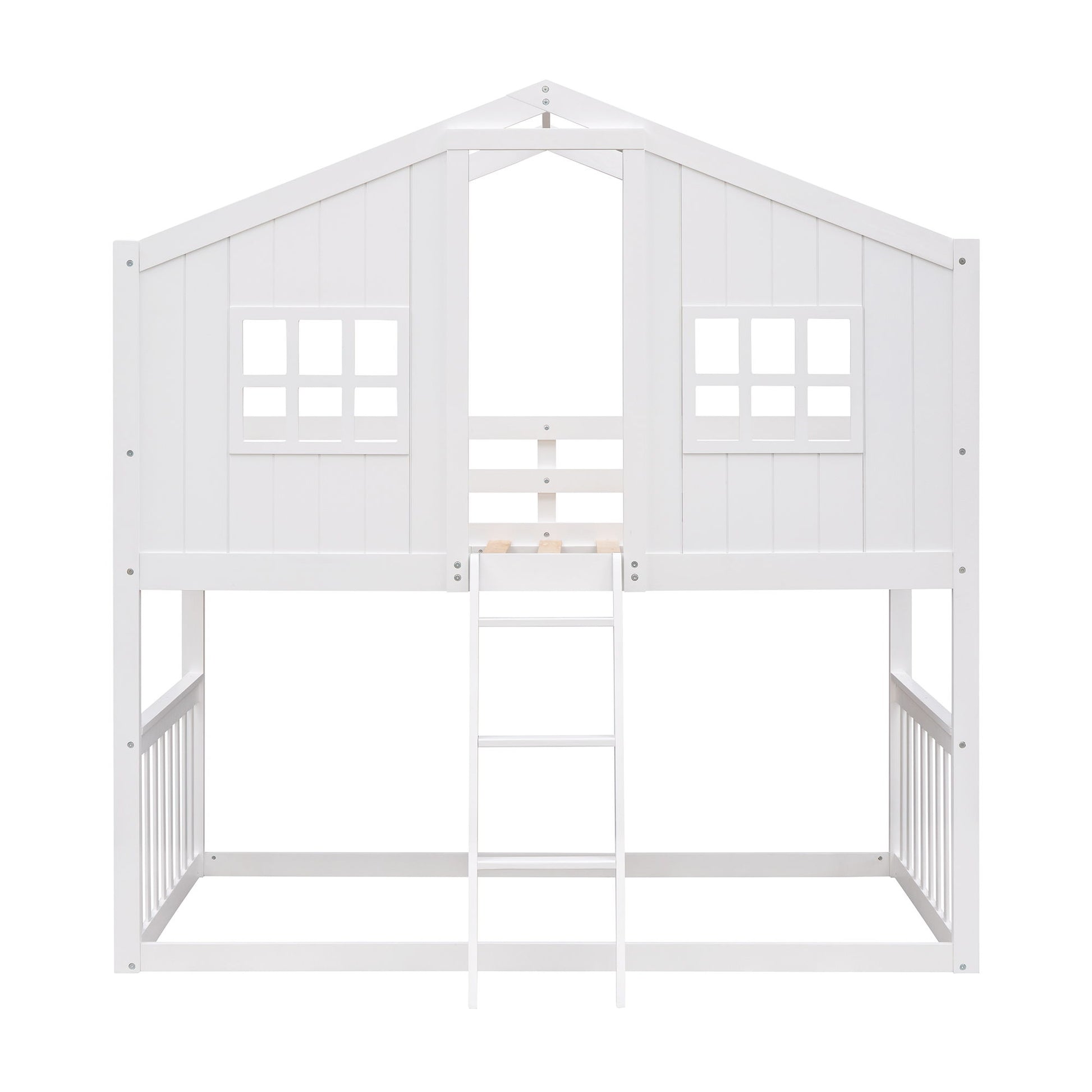 Twin Over Twin House Bunk Bed With Ladder - Gray