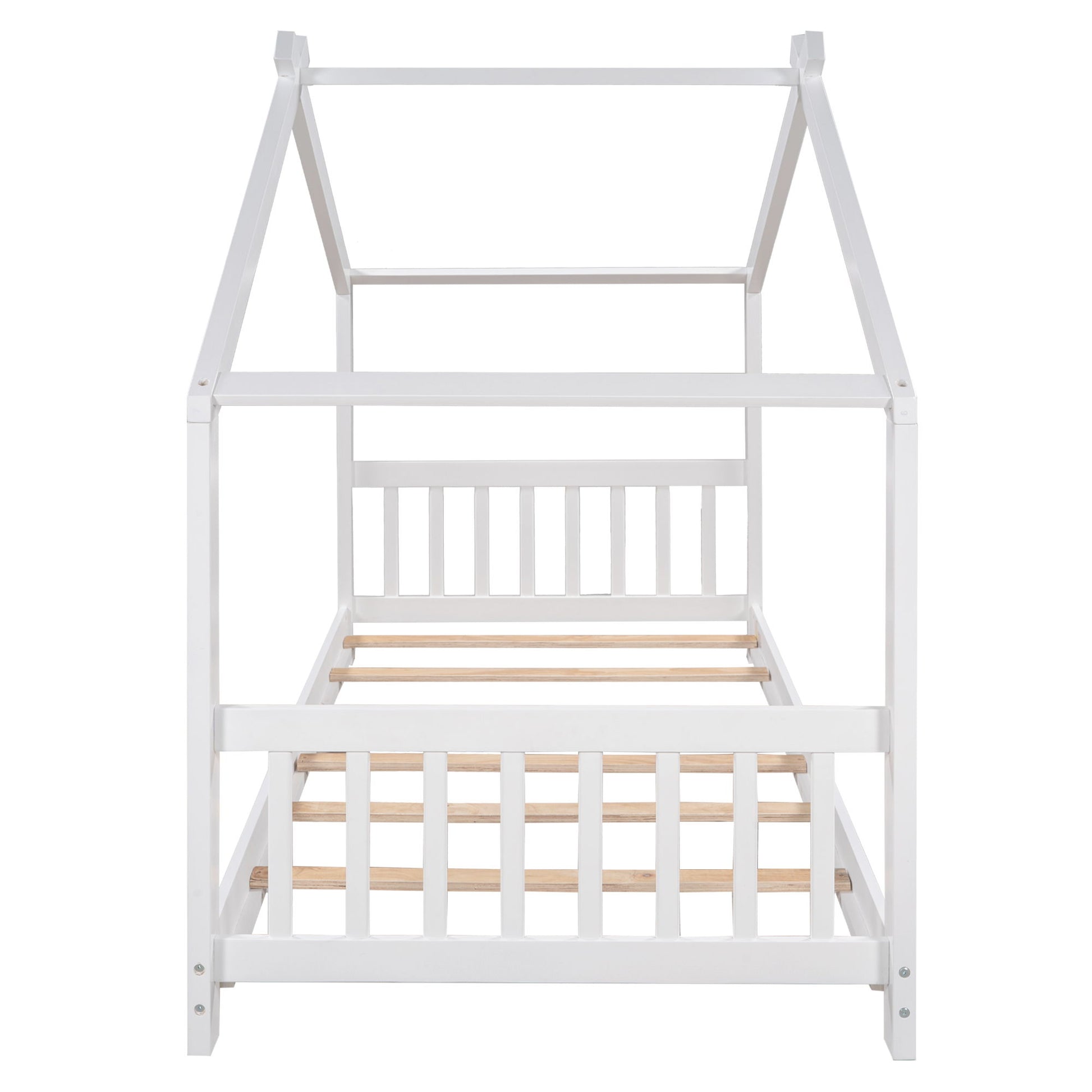 Twin Size House Platform Bed With Headboard And Footboard, Roof Design - White