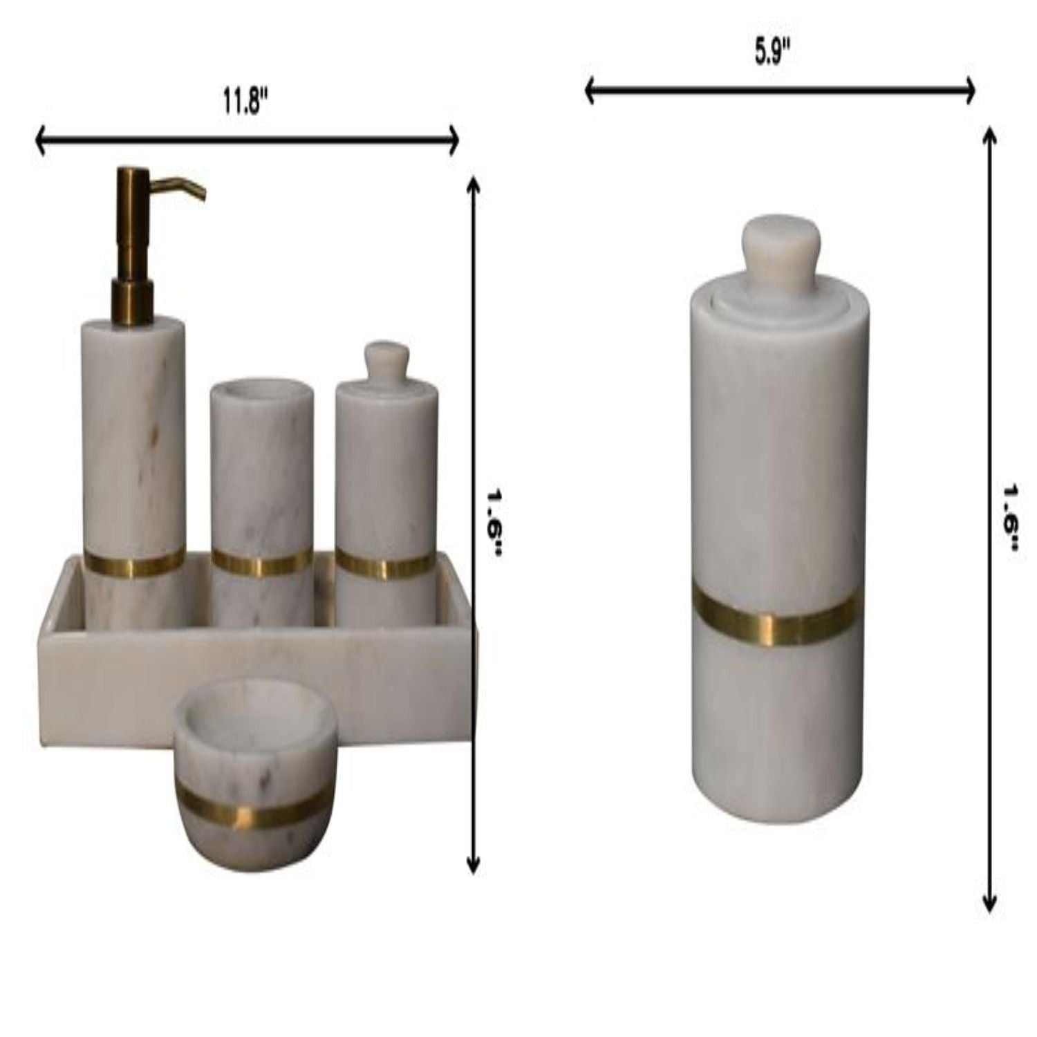 • Elegant 5-Piece Set: Includes a soap dish, soap dispenser, toothbrush holder, cosmetic box holder, and a matching tray.