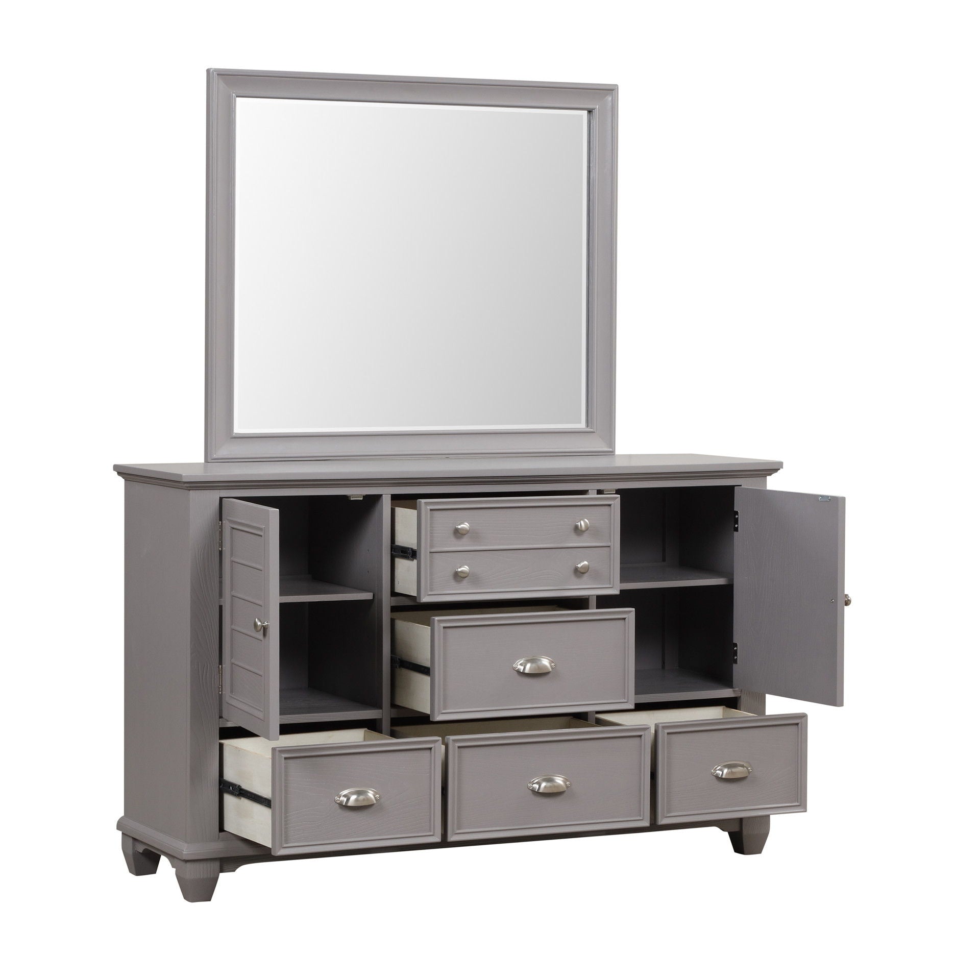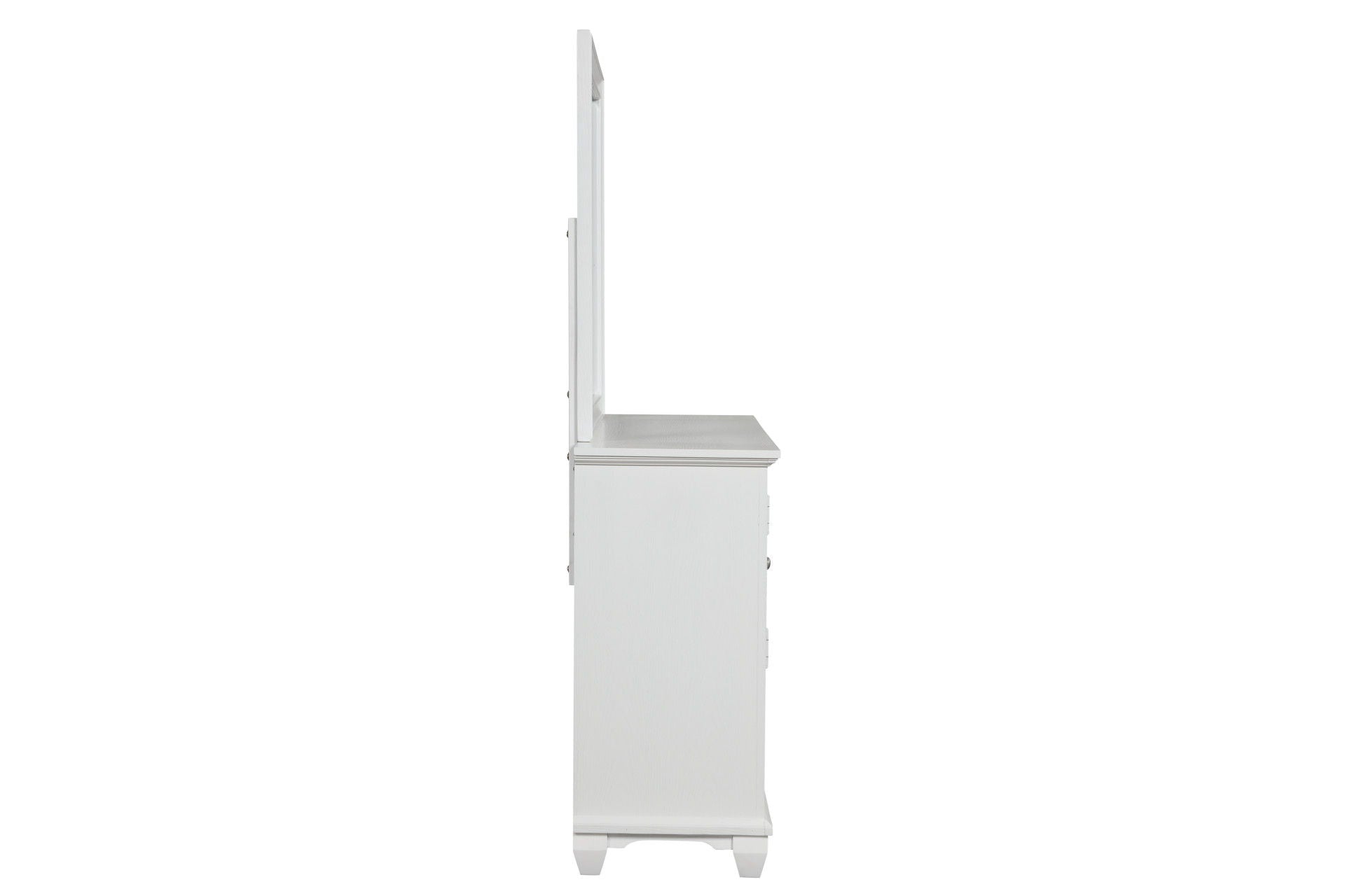 The Jamestown Dresser Mirror is a perfect blend of durability and style, designed to complement any bedroom decor. Expertly crafted from solid Acacia, premium manufactured woods, and authentic Oak veneers, this mirror ensures long-lasting durability while maintaining the natural elegance of real wood. The Jamestown collection exudes modern coastal charm with its clean, contemporary lines and crisp, brushed finish, bringing a serene, beach-inspired ambiance to your space. The mirror features a pristine, low-distortion beveled glass that is beautifully encased in picture frame-style moldings, offering a clean and sophisticated look that enhances the overall aesthetic of any room. This elegant mirror not only serves as a functional piece but also adds a touch of refinement to your bedroom.