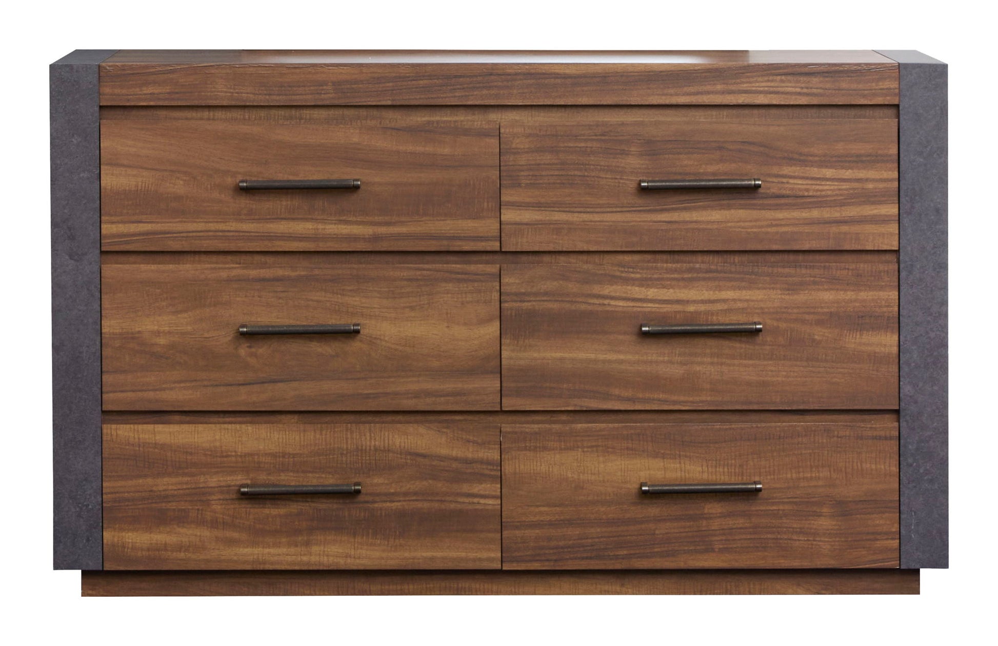 The Jensen Collection embodies the raw and edgy appeal of modern industrial style and featuring a Tavern Brown finish paired with Verona Bronze hardware for a rugged and utilitarian look. The casegoods showcase the perfect balance of wood and aged metal laminate and creating a striking mixed-media effect with bold and masculine lines. Set-back rails on the case fronts enhance the industrial aesthetic and adding depth and visual interest. Perfect for those seeking a bold and industrial-inspired retreat and the Jensen Collection will bring a dynamic and modern edge to your bedroom.