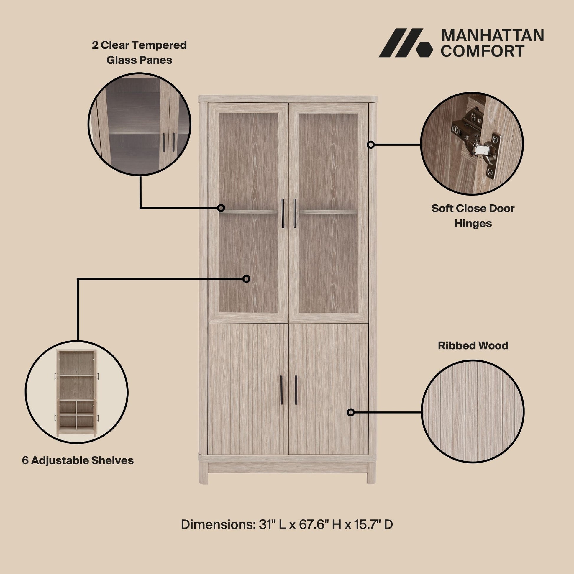 • Soft-Close Doors: Smooth, quiet operation with tempered glass and ribbed wood panels