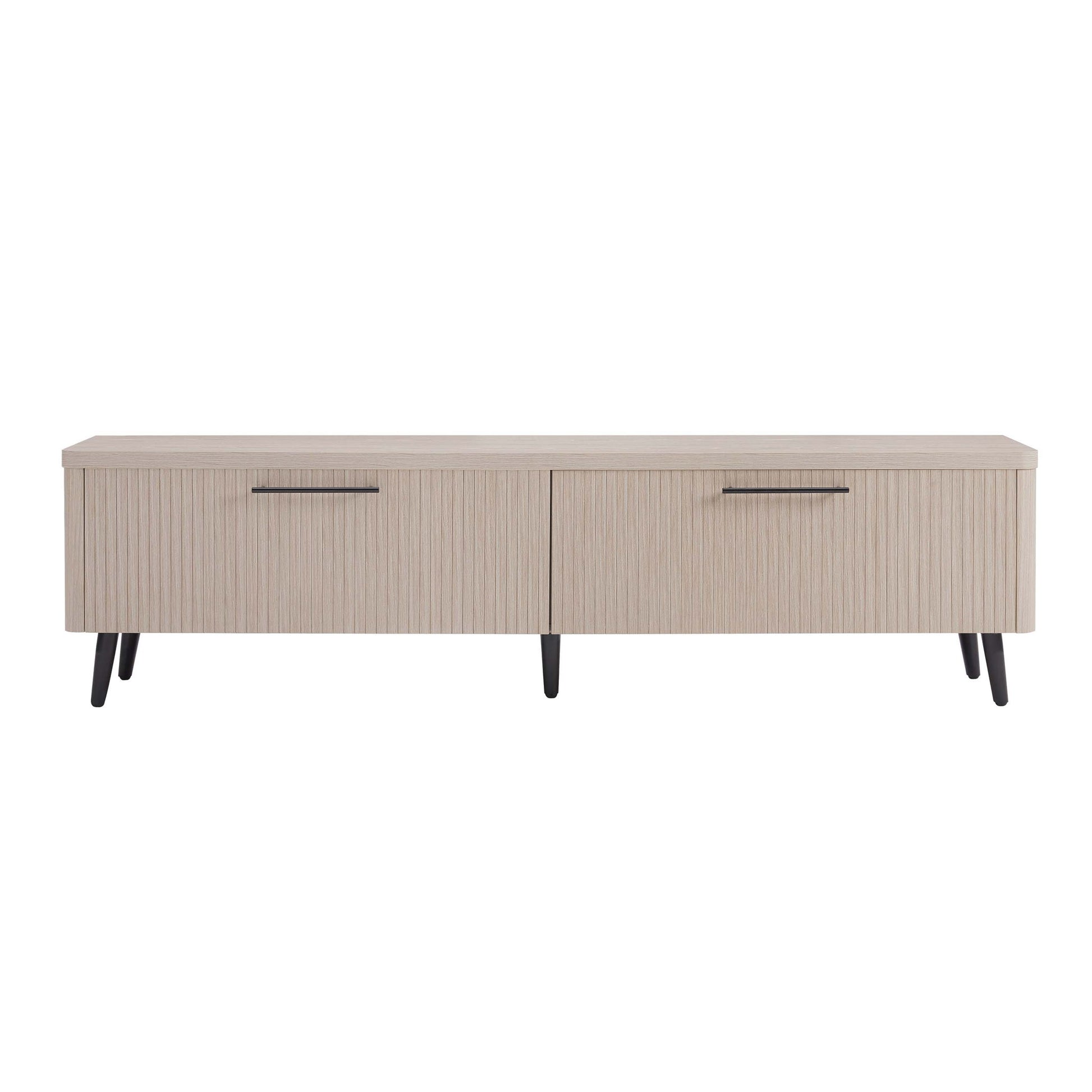 • Fluted Storage Drawers: Two functional drawers for organized media storage