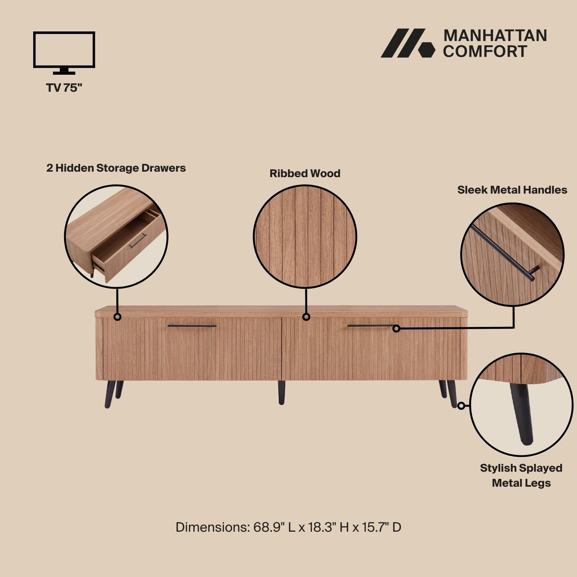• Spacious Storage: Two fluted drawers offer ample space for remote controls and media items
