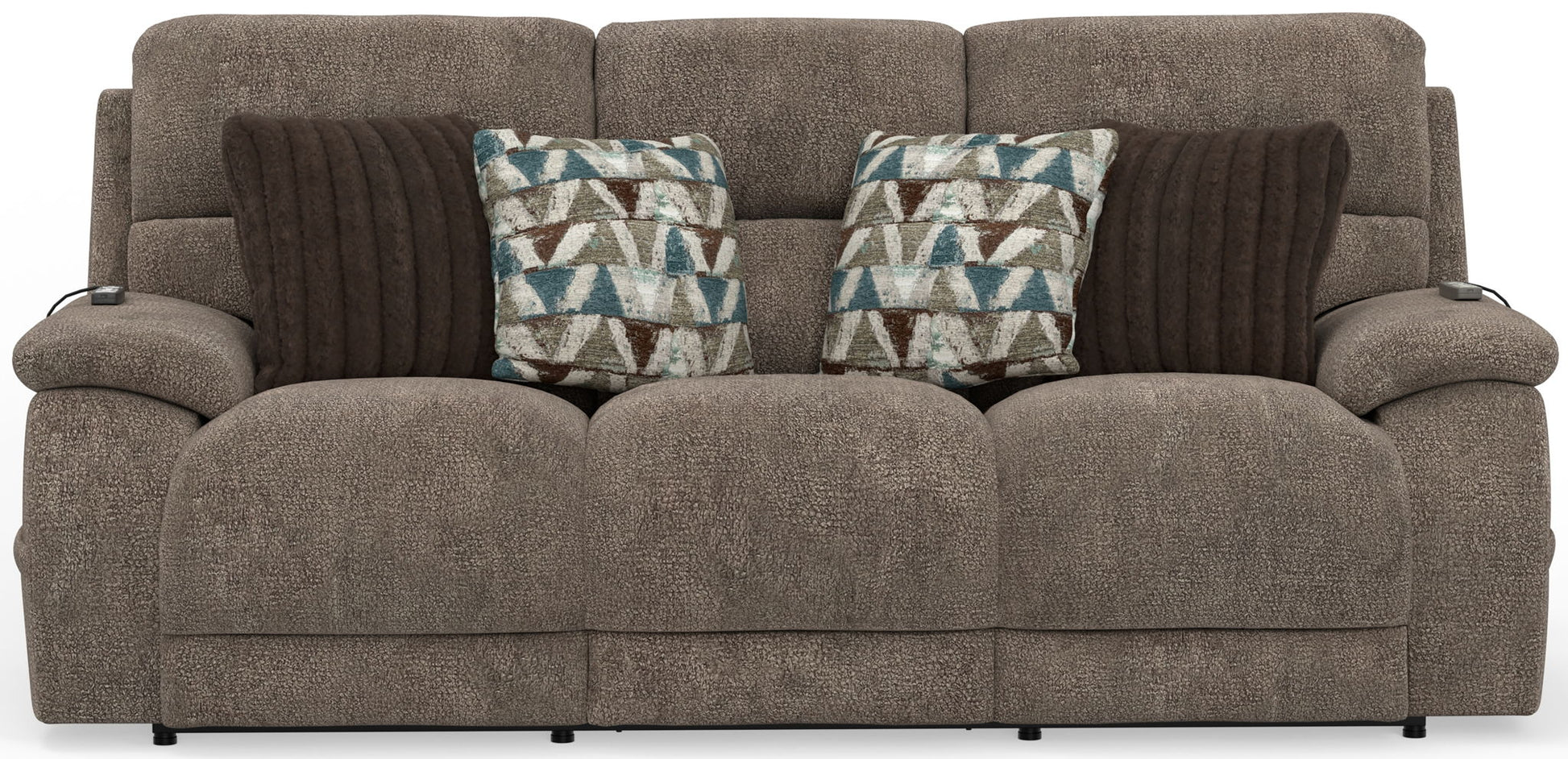 Joya - Power Headrest Power LayFlat Reclining Sofa With CR3 Heat/Massage/Lumbar/ZG - Mushroom Product Features Pub-Back Pillow Arm Design Soft Chunky Polyester Fabric Zero-Gravity Power Recline Shiatsu Massage Feature Power Headrest/Power Lumbar Comfort Coil Seating featuring Comfor-Gel Steel Seat Box
