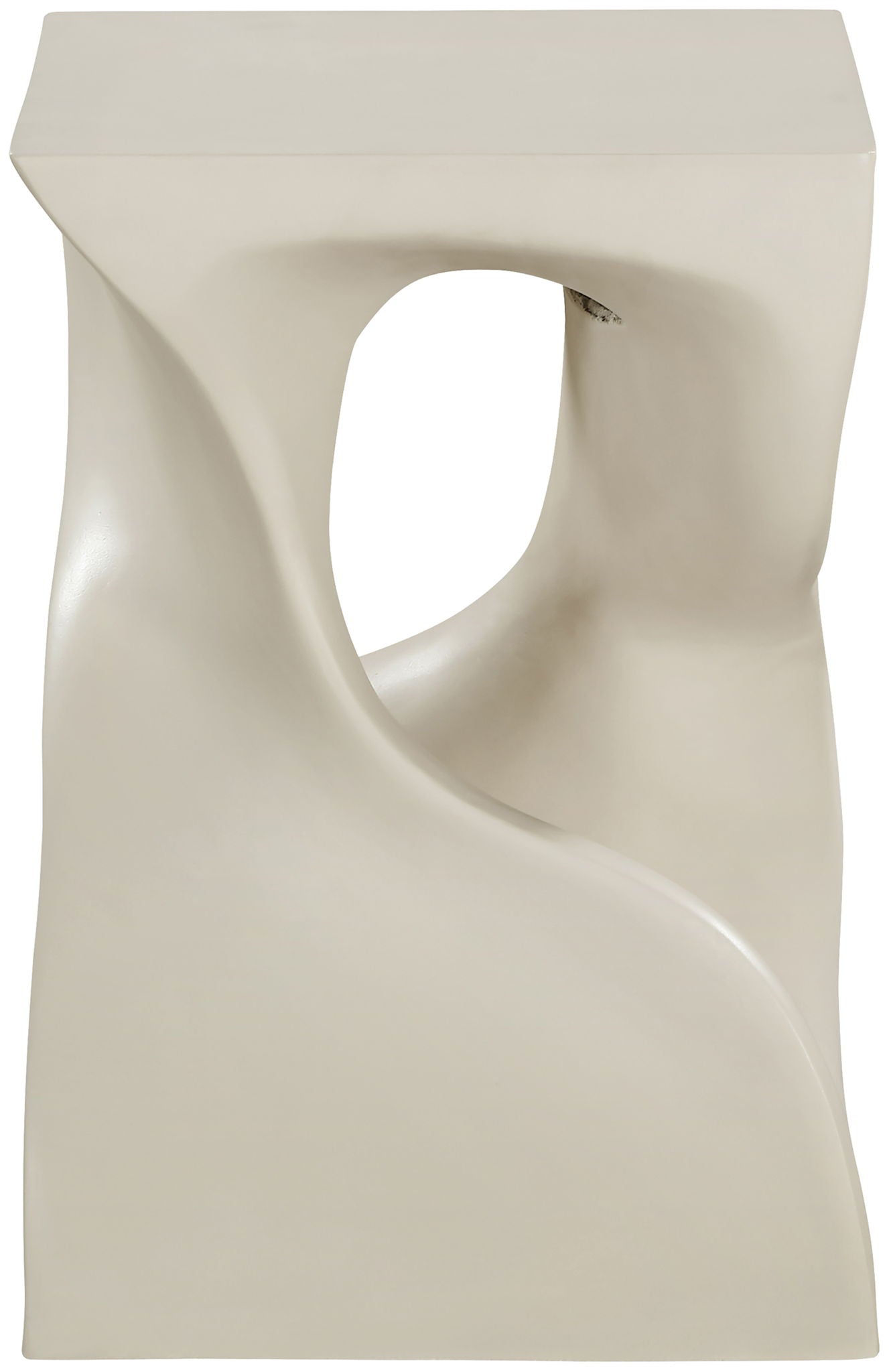Sculptural and bold, the Jula taupe fiber-reinforced concrete end table brings an artistic edge to any space. Its twisted silhouette nods to Art Deco design while offering the durability of concrete construction. Suitable for both indoors and outdoors, it's a versatile piece that makes a lasting statement.
