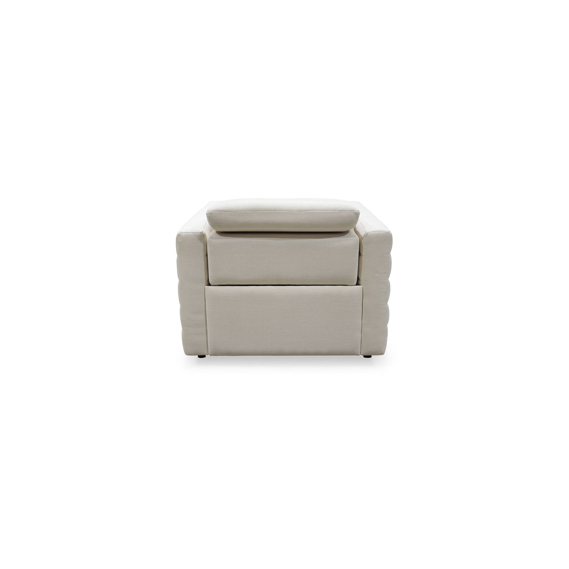 Wrapped in soft chenille, the Juno power recliner chair's sleek silhouette and horizontal channel detailing exude modern elegance. Hidden buttons effortlessly transition between positions, while the adjustable headrest offers personalized support.