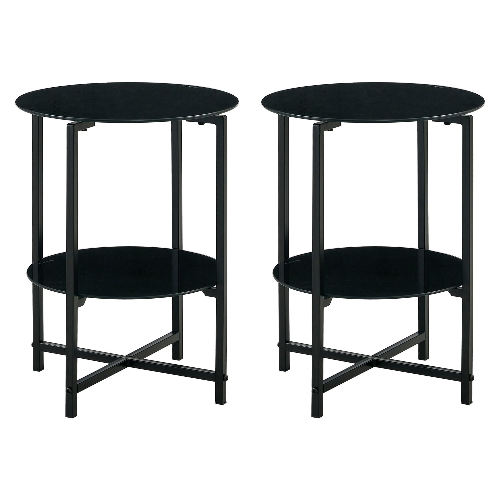 Tempered Glass End Table (Set of 2), Round Coffee Table For Bedroom Living Room Office - Black