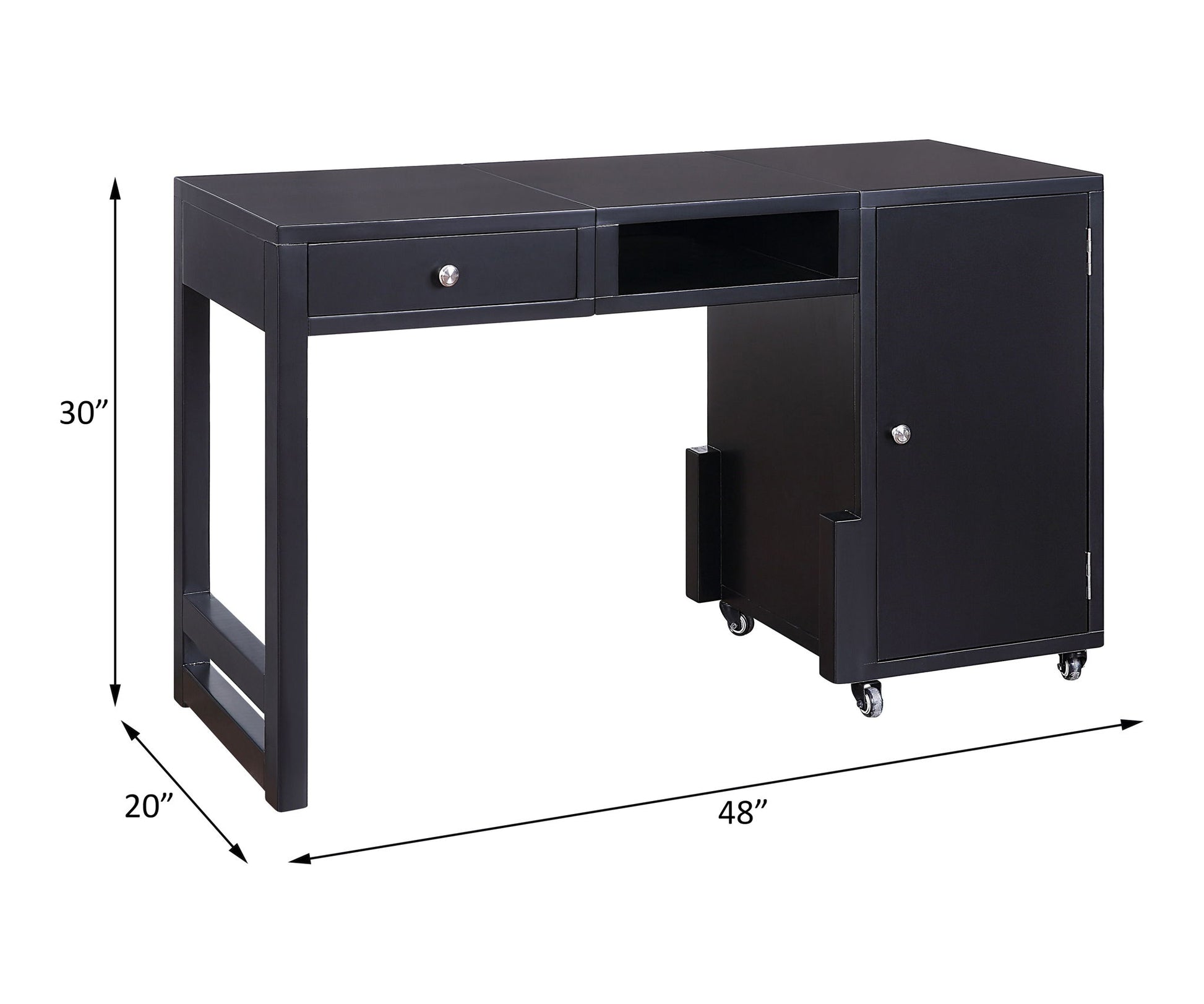 A perfect mix of style and functionality, transform your office space with this Kaniel desk. Its spacious work surface provides a lot of room for all the office essentials. Featuring drawer, door, and an open compartment, it also offers the capability to convert into a tall cabinet. Available in a black or white finish, this desk is destined to be the space-saver.