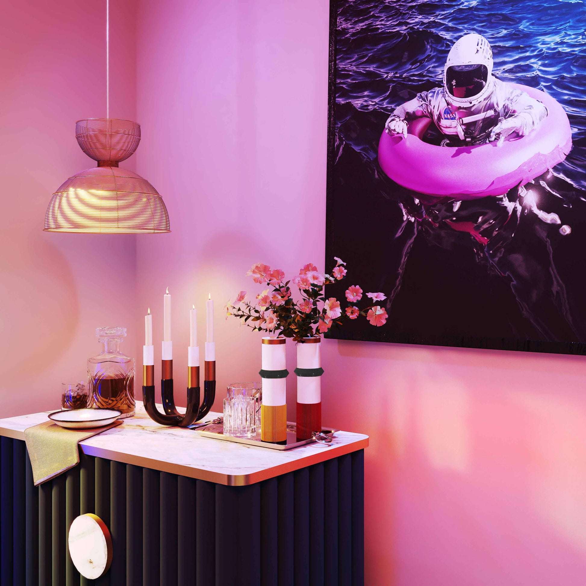 Enhance your space with the Kaonashi Candelabra and place this item as a centerpiece on your dining table or as decor on your mantel. This piece is carefully handcrafted out of iron and aluminum and is made to last as a focal point in your home. The four arms allows for four candles to light your space in a beautiful and peaceful glow.