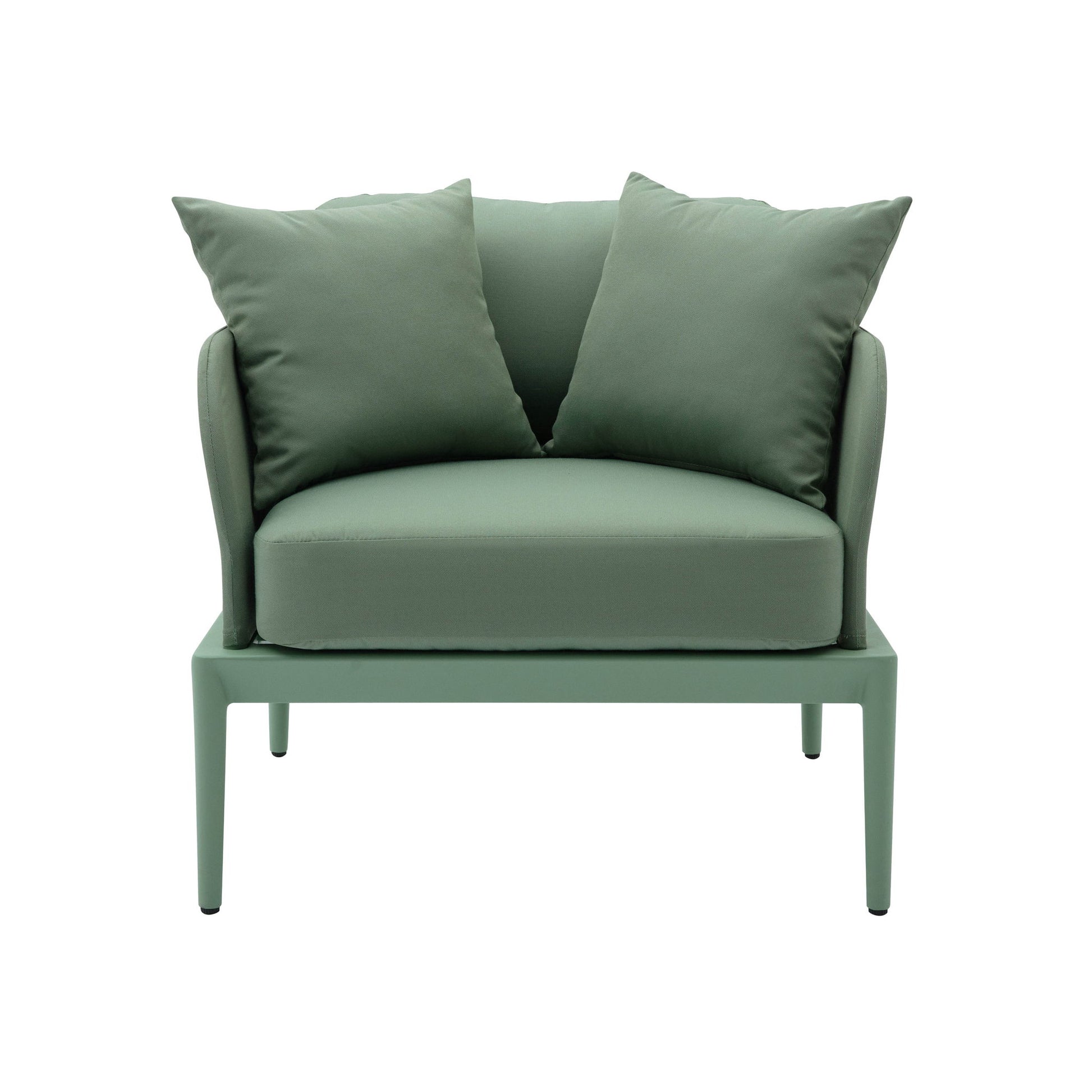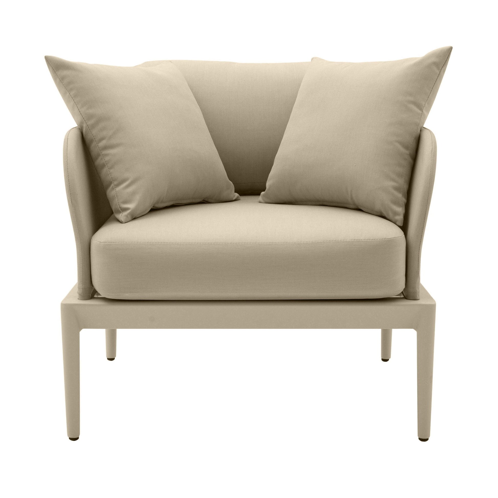 Lounge in luxury with the Kapri Outdoor Modular Collection, a dynamic design that offers endless configurations to suit any space. Crafted from rust-resistant aluminum, this collection ensures longevity and durability. With outdoor-grade fabric and metal finishing, a unique slipcover design for armrests and backrests, and a stylish monochromatic aesthetic with texture contrasts, Kapri brings both comfort and contemporary style to your outdoor retreat. Plus, the easy sectional setup with velcro eliminates the need for clunky tools, making it a breeze to create the perfect outdoor seating arrangement.