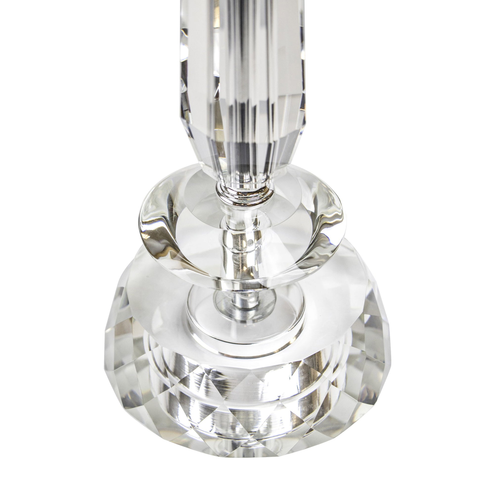 • Dimensions and Material: The lamps measure 26 inches in height, with a base of 10 inches by 10 inches. They are crafted from clear K9 crystal and chrome metal, weighing 5.50 lbs each.