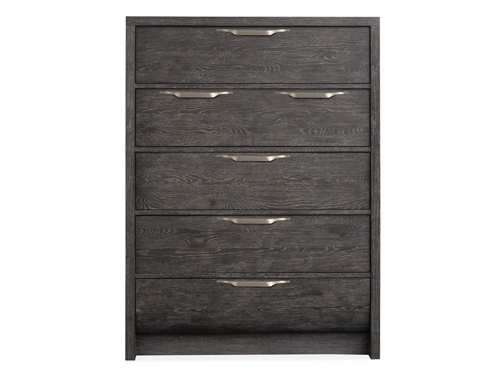 Introducing Kinsley and a striking centerpiece for any modern contemporary home. This collection features sleek and clean lines and practical functionality that blend seamlessly with its stylish design. The Black Heron finish and complemented by Oslo Pewter fabric and Satin Nickel hardware and adds a touch of elegance and sophistication. Its contemporary style makes it an ideal fit for minimalist and chic interiors and enhancing the overall aesthetic of your living space. Crafted from random flip and slip flakey oak veneer hardwood solids and the Kinsley promises both durability and refined beauty.