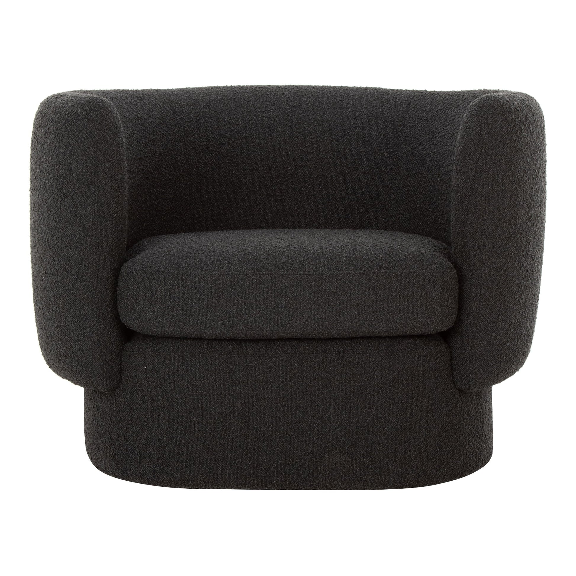 Soft as a cloud while exuding contemporary cool, the Koba chair comes in a distinct black with sumptuous form and curved lines. Curved lines, extra-comfort foam filling and solid wood construction make this chair soft and supple at the same time.