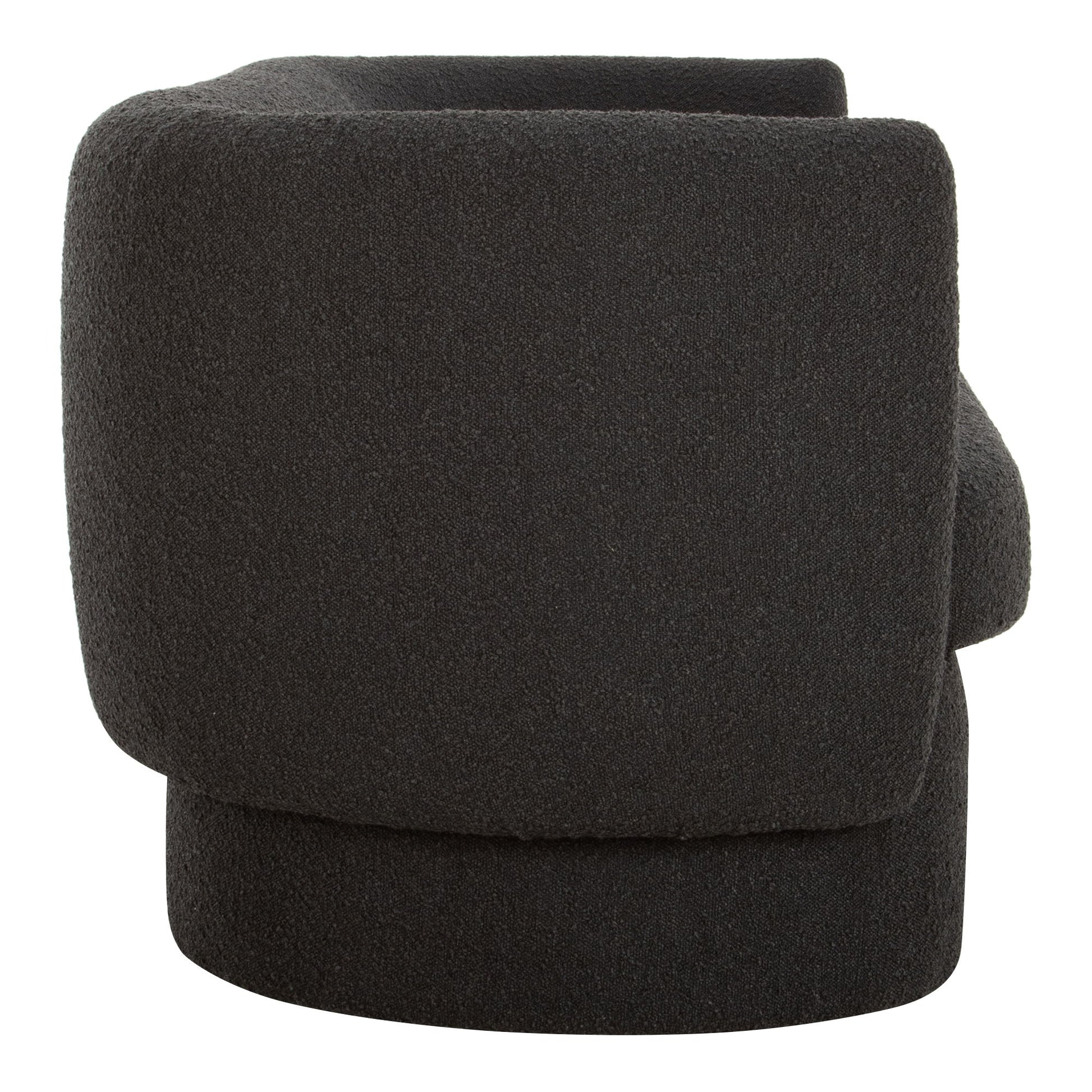 Soft as a cloud while exuding contemporary cool, the Koba sofa comes in black with spacious seating for four. This deeply seated sofa's curved lines, extra-comfort foam filling and solid wood construction make this couch soft and supple at the same time.