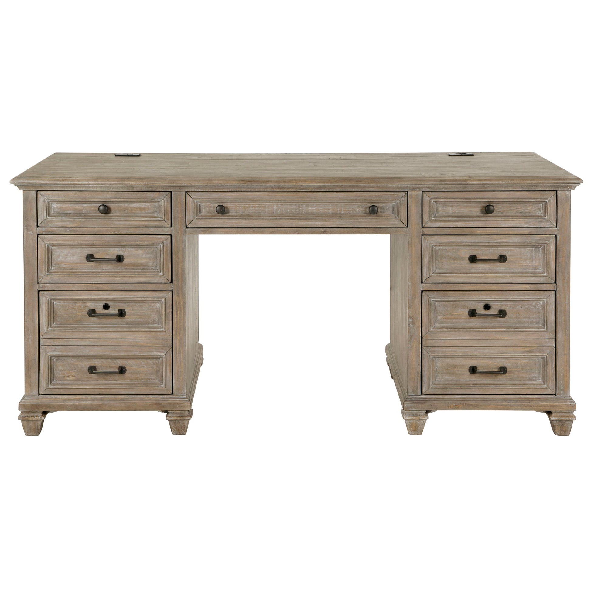 Seeking refined design and casual and rustic appeal in simply useful office pieces? Lancaster, crafted of Pine solids with handsome beaded panels in an updated Dovetail Grey finish and by Weathered Bronze pulls is the ideal solution. The desk; offered with optional hutch and lateral file have overhung tops and bead frame drawers with nicely shaped turned legs at the base. Crisp and updated, the open writing desk features a triangular open base with handsome cross supports that is repeated in the open bookcase while a glass door bookcase and fully upholstered swivel chair will support endless hours of productive home based work for any relaxed setting.