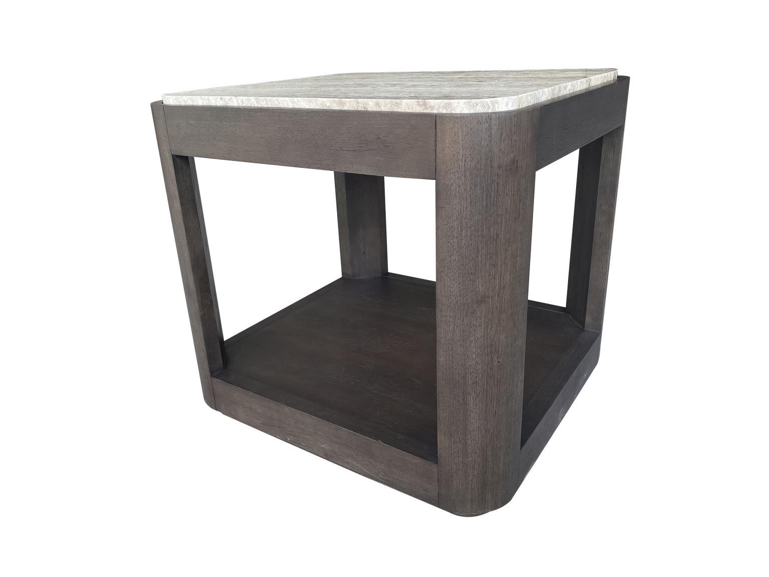 Lancia - Rectangular End Table With Stone Top - Charred Oak