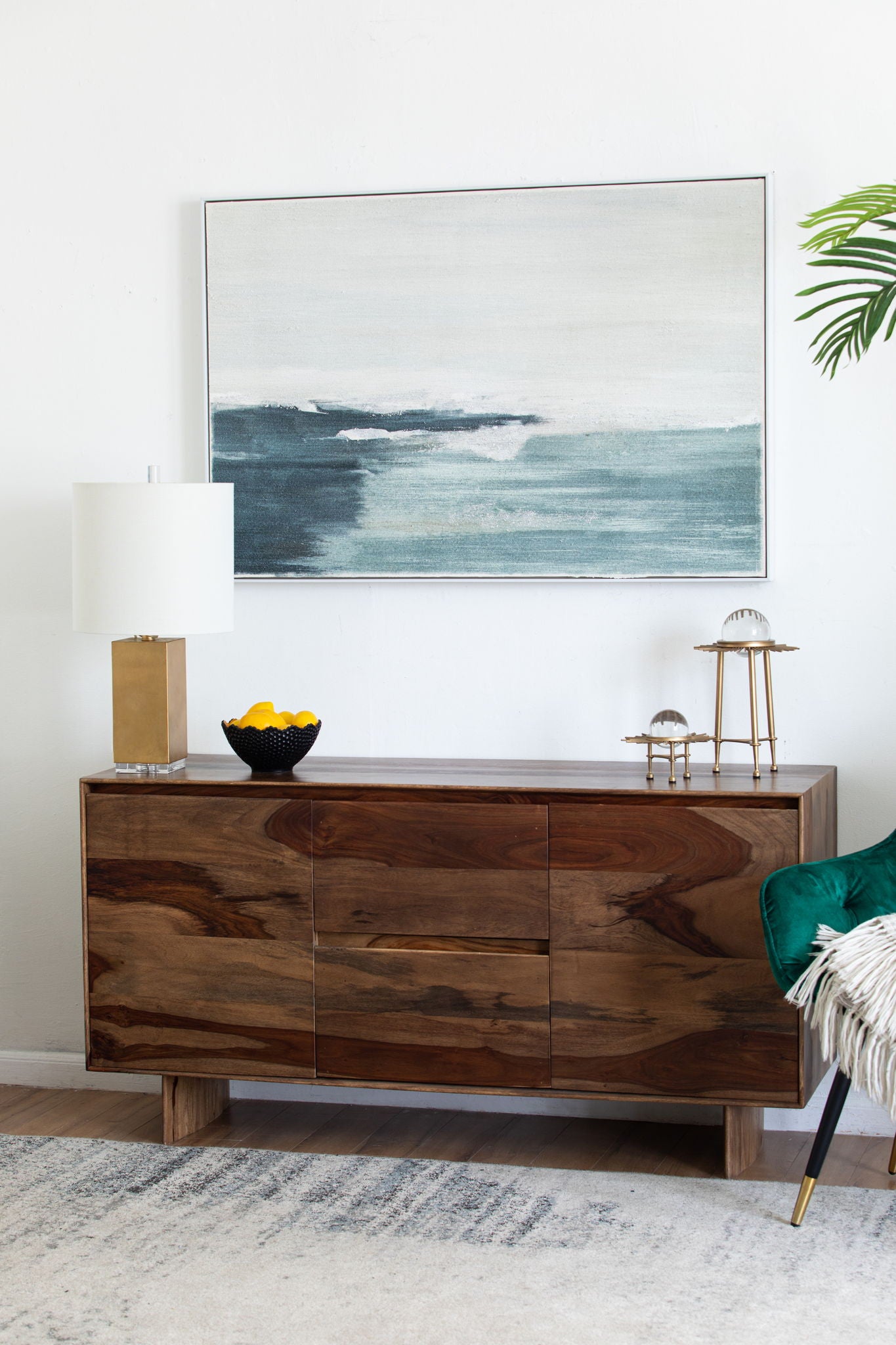 Large Rectangle Framed Wall Art Ocean Waves Canvas Print, Home Decor For Living Room Foyer Office - White / Blue
