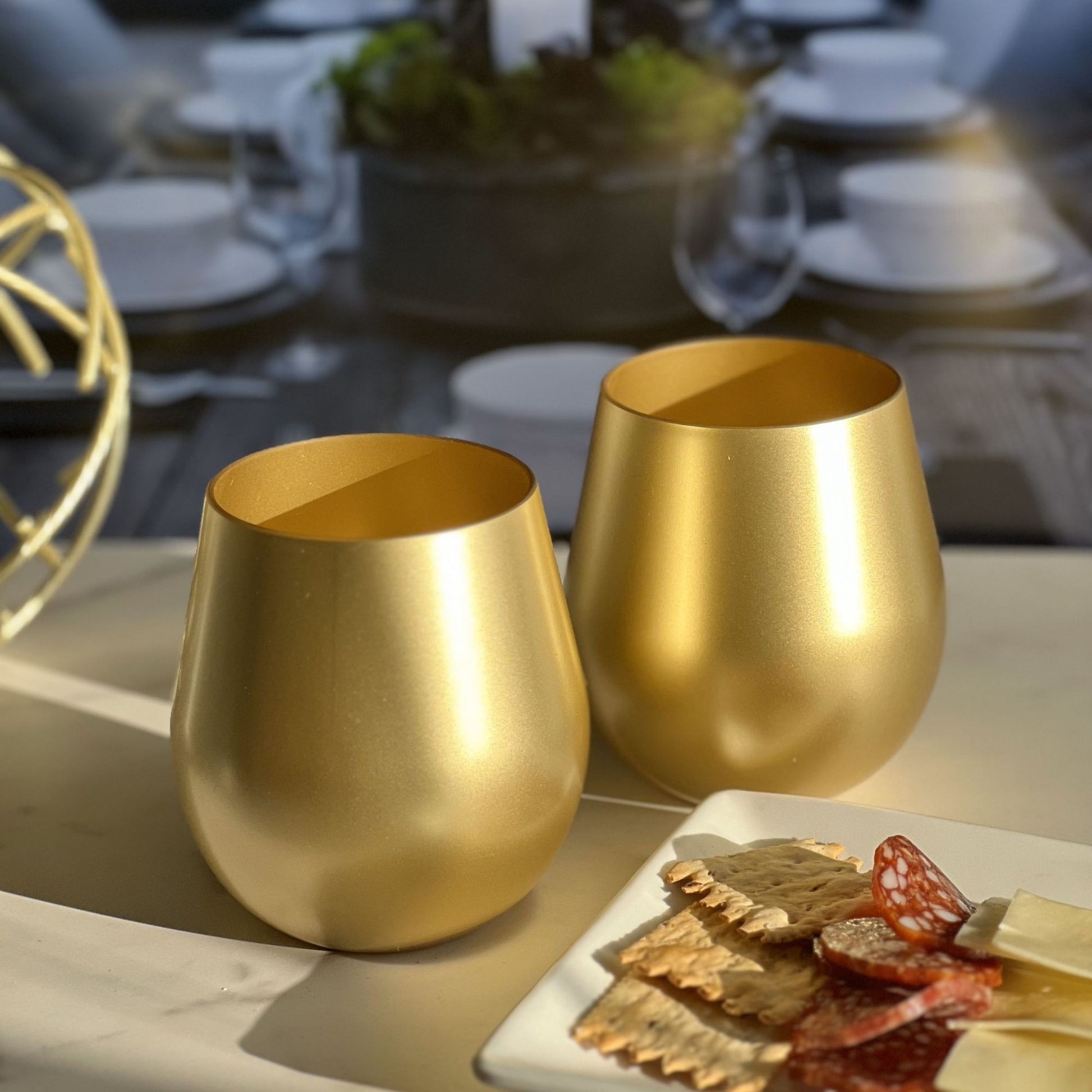 Leadingware Metallic Plastic Wine Glasses (Set of 4), Bpa Free, Unbreakable, 18Oz - Gold