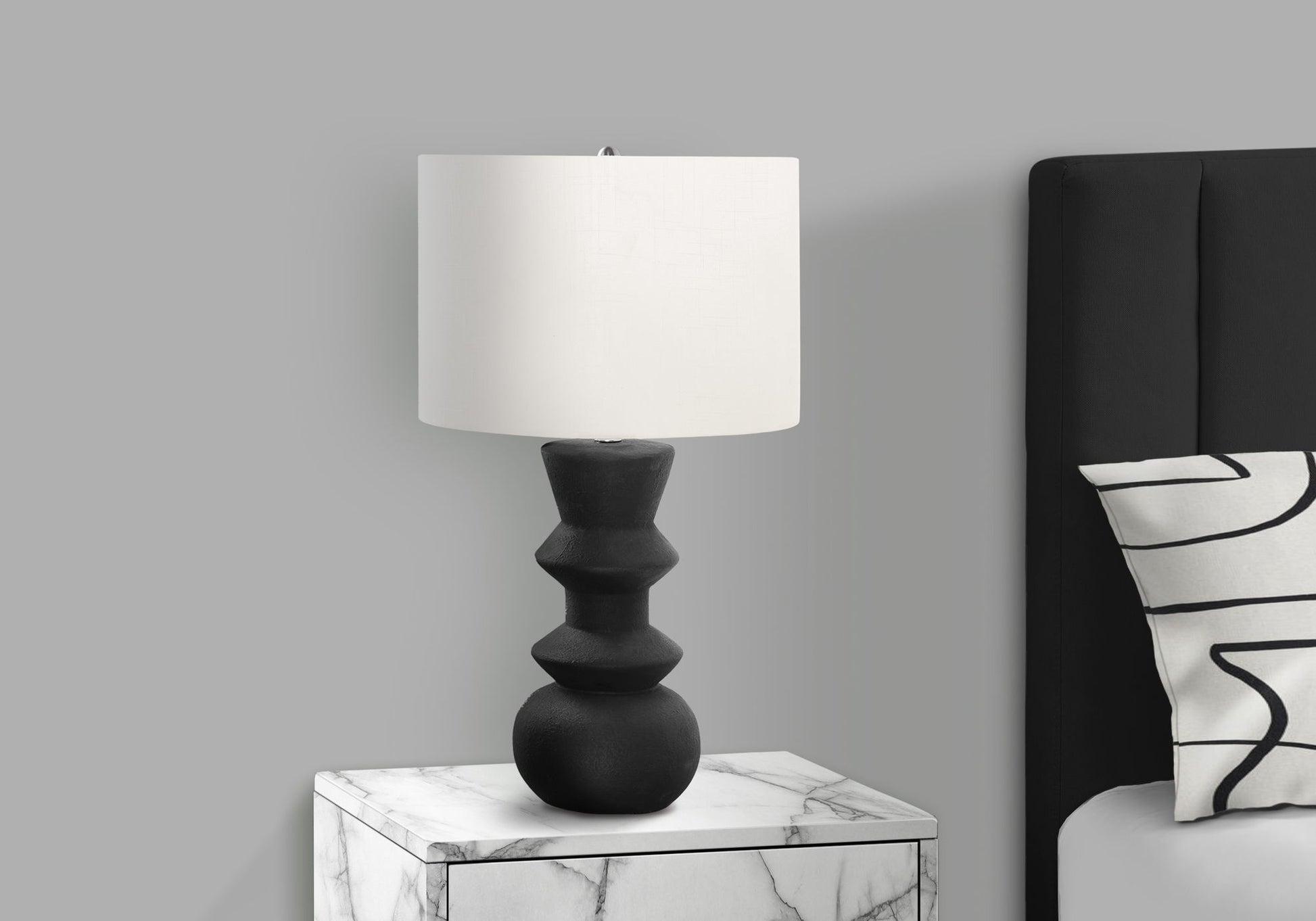 • Stylish Design: This 26" table lamp features a unique geometric base with a chic ceramic textured finish, adding contemporary flair to any room.
