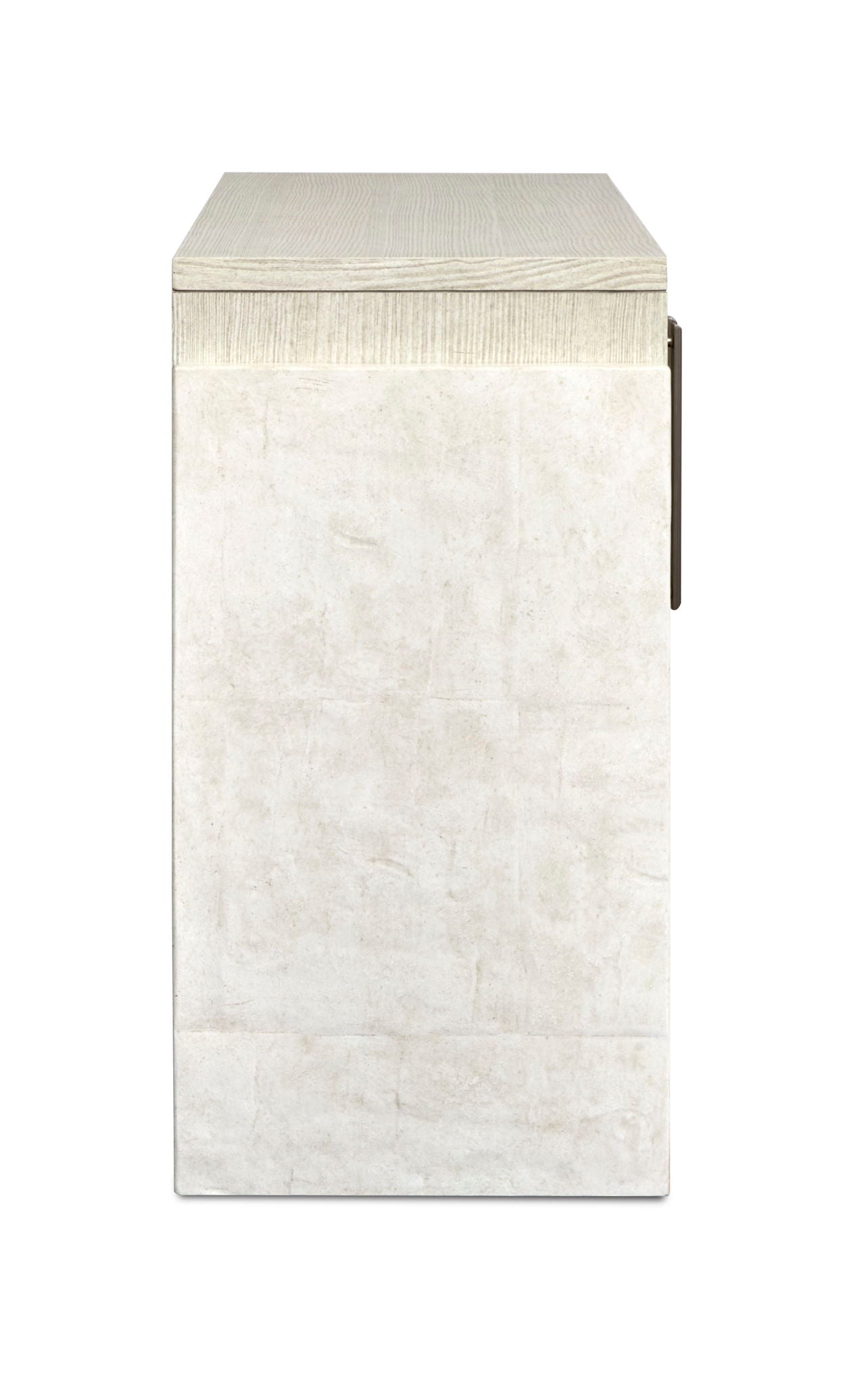 Discover the sophisticated allure of the Lorelei and a prime example of contemporary design at its finest. This collection seamlessly blends style and functionality and boasting meticulously crafted details that enhance both aesthetics and practicality. The Misty Cloud finish and coupled with Sand Shell fabric and Satin Bucket hardware and exudes a sophisticated and serene ambiance. Perfect for modern interiors and it introduces an air of understated elegance and comfort. Constructed from heavy wire brushed quarter thick pine veneer and embossed MDF and hardwood solids and and resin and the Lorelei ensures enduring durability and timeless appeal and making it a distinguished addition to any home.