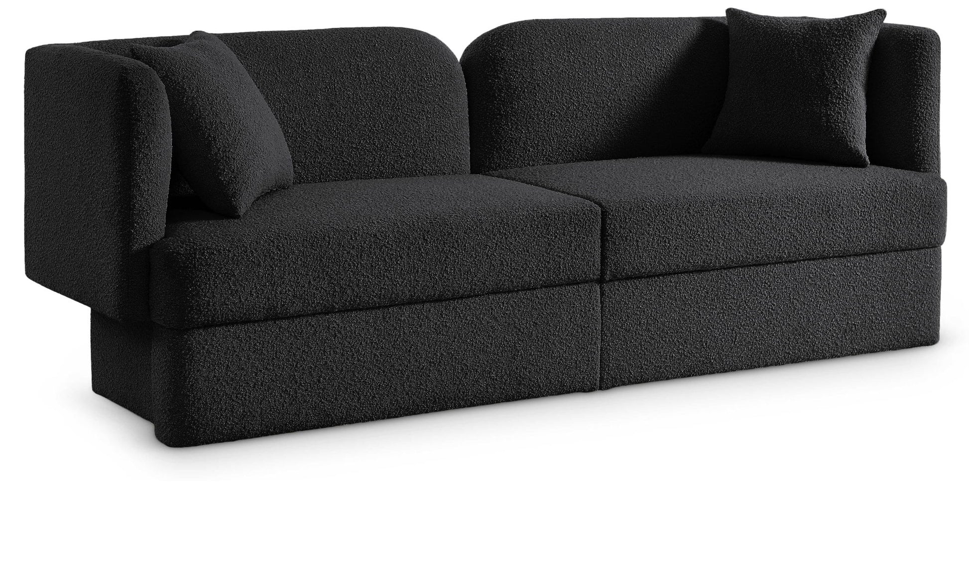 Bring artsy fun to your room with this Marcel boucle fabric sofa. This eye-grabbing sofa is part art, part functional seating item for your living room, bedroom, and beyond. The rich black boucle fabric is soft and yielding against the skin, keeping you comfortable while you unwind and relax. The contemporary inspired design is bound to garner attention no matter where you choose to use it.