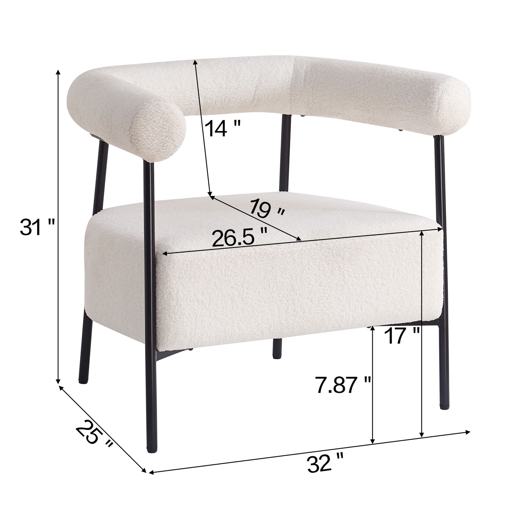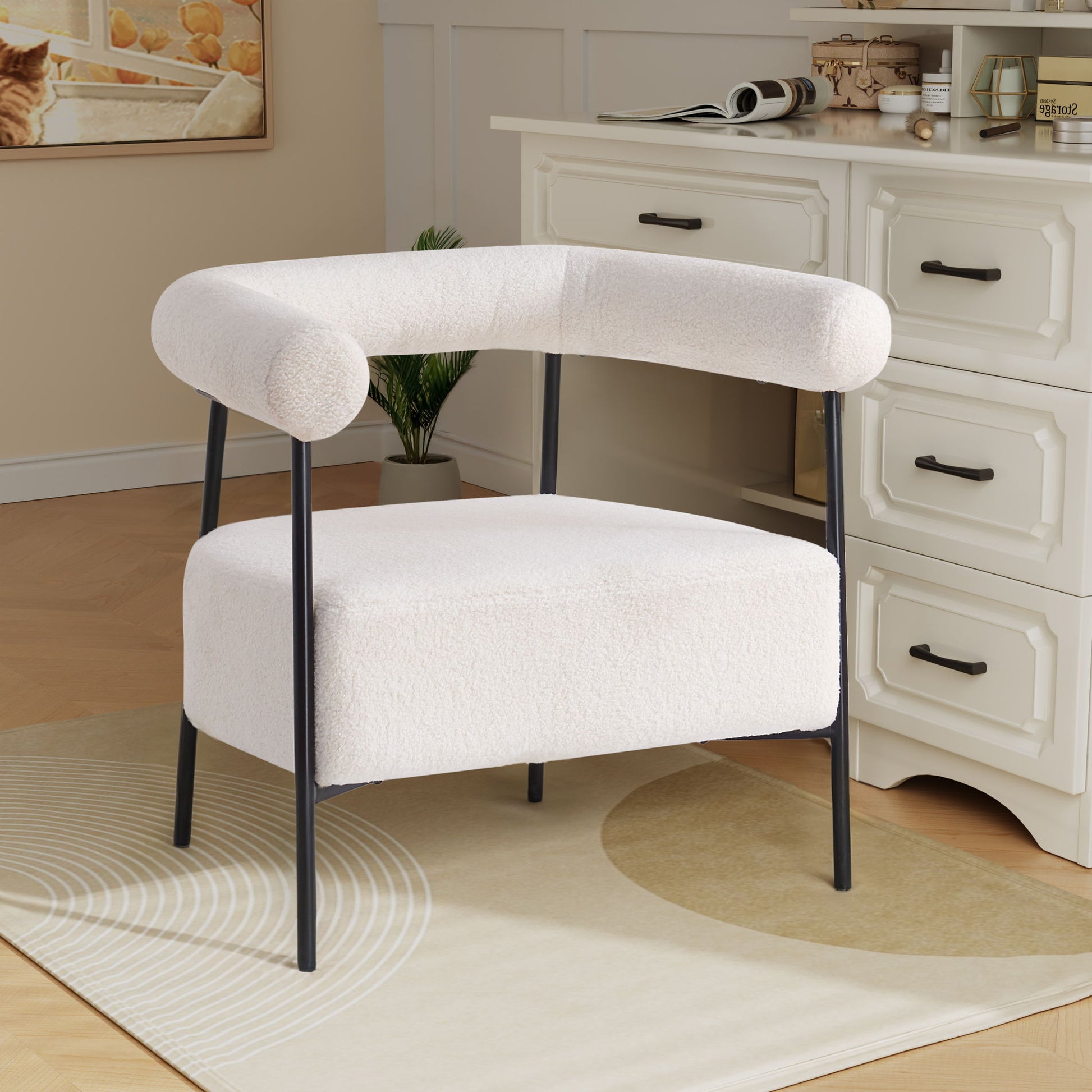 Modern Boucle Fabric Upholstered Accent Chair, Curved Armchair With Metal Frame - White