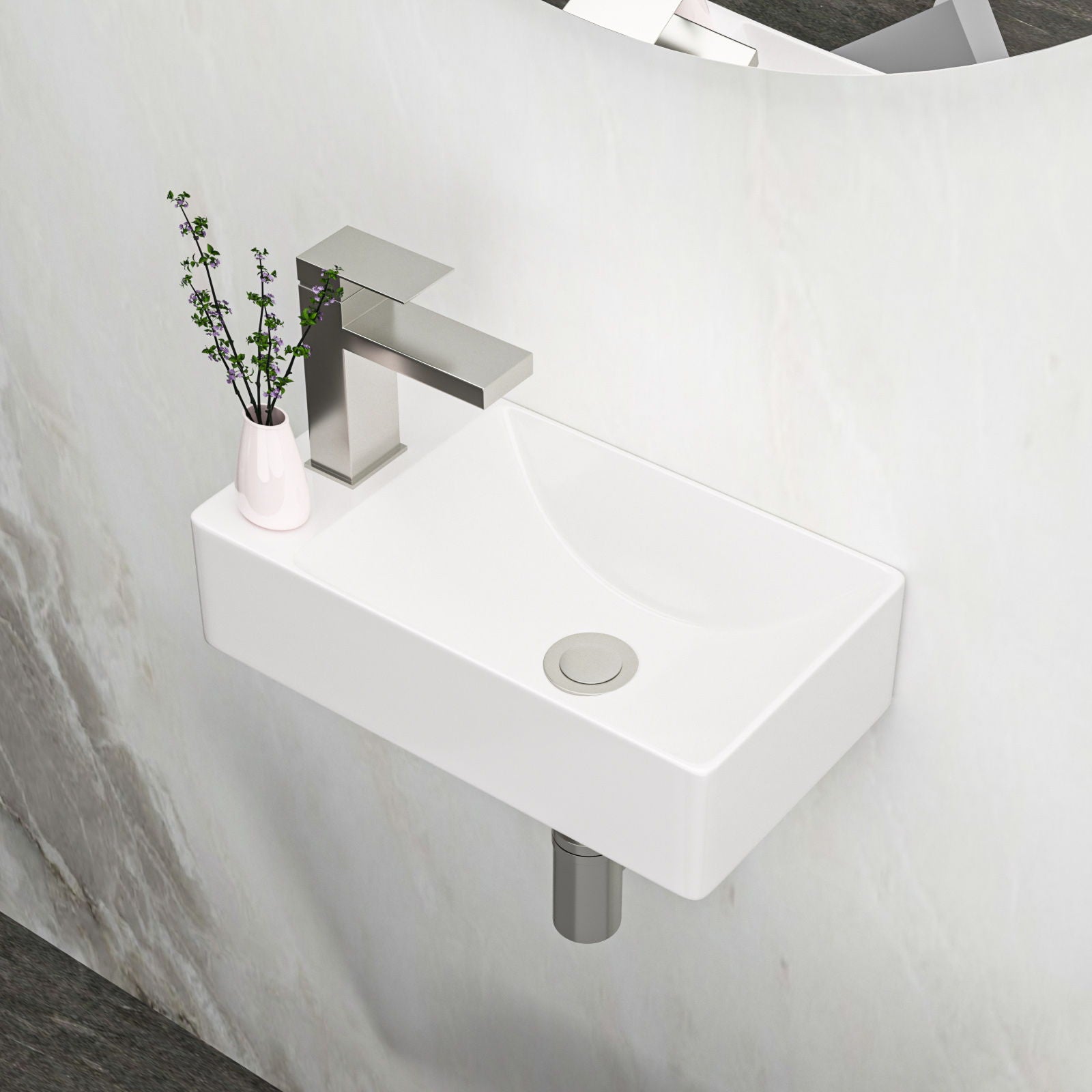 Modern Ceramic Rectangle Wall Mount Bathroom Sink With Single Faucet Hole