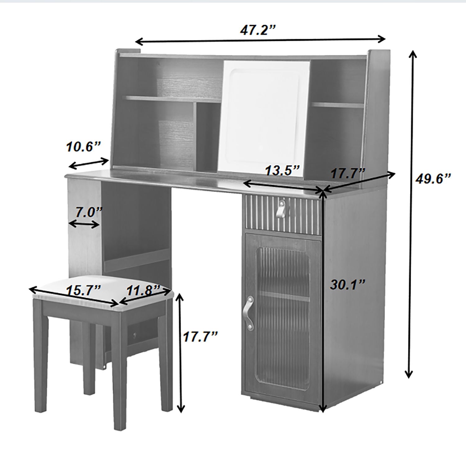 • Ample Storage Solutions: Keep your cosmetics and accessories organized with spacious shelves and a large drawer.