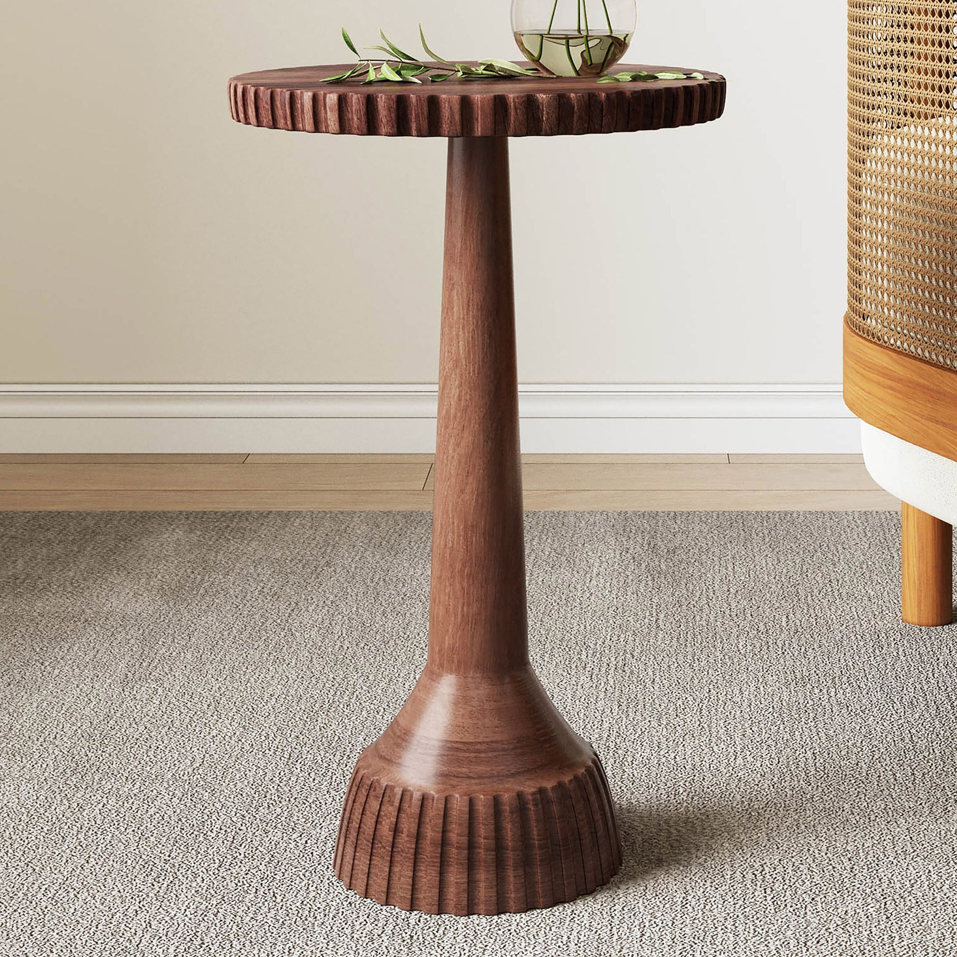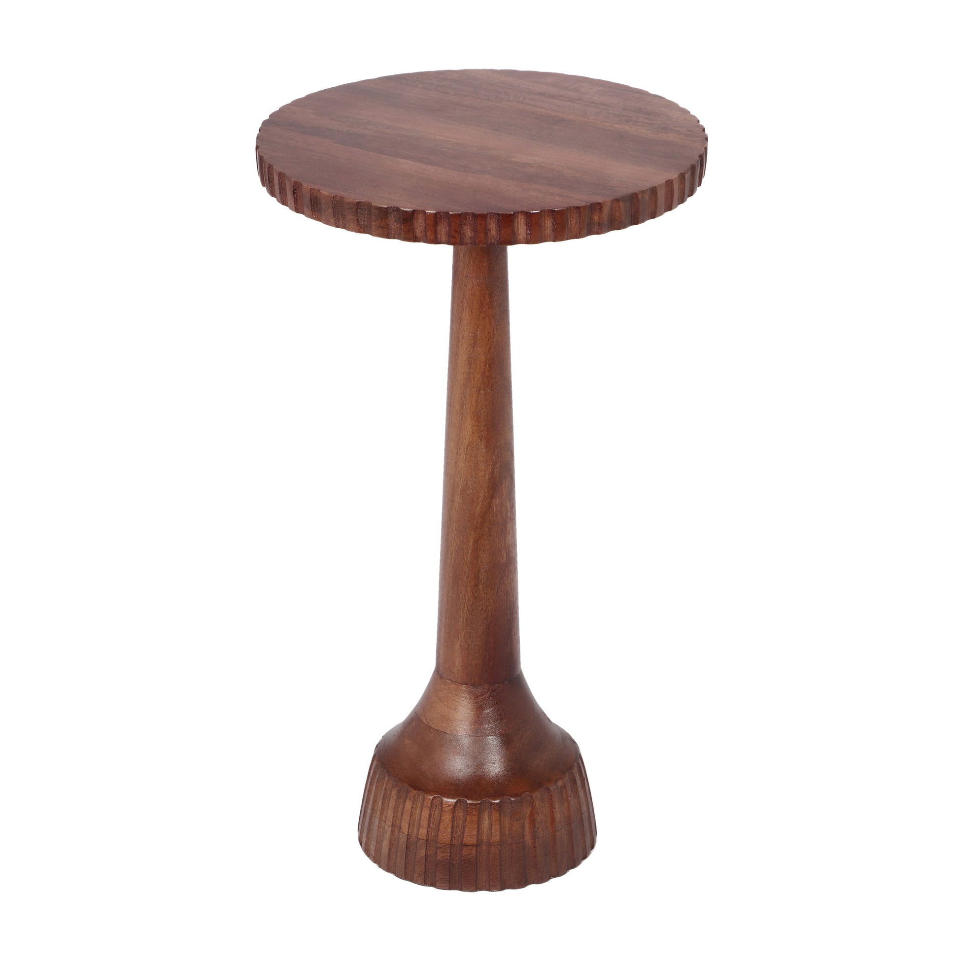 Modern Mango Wood Round End Table With Pedestal Base - Honey