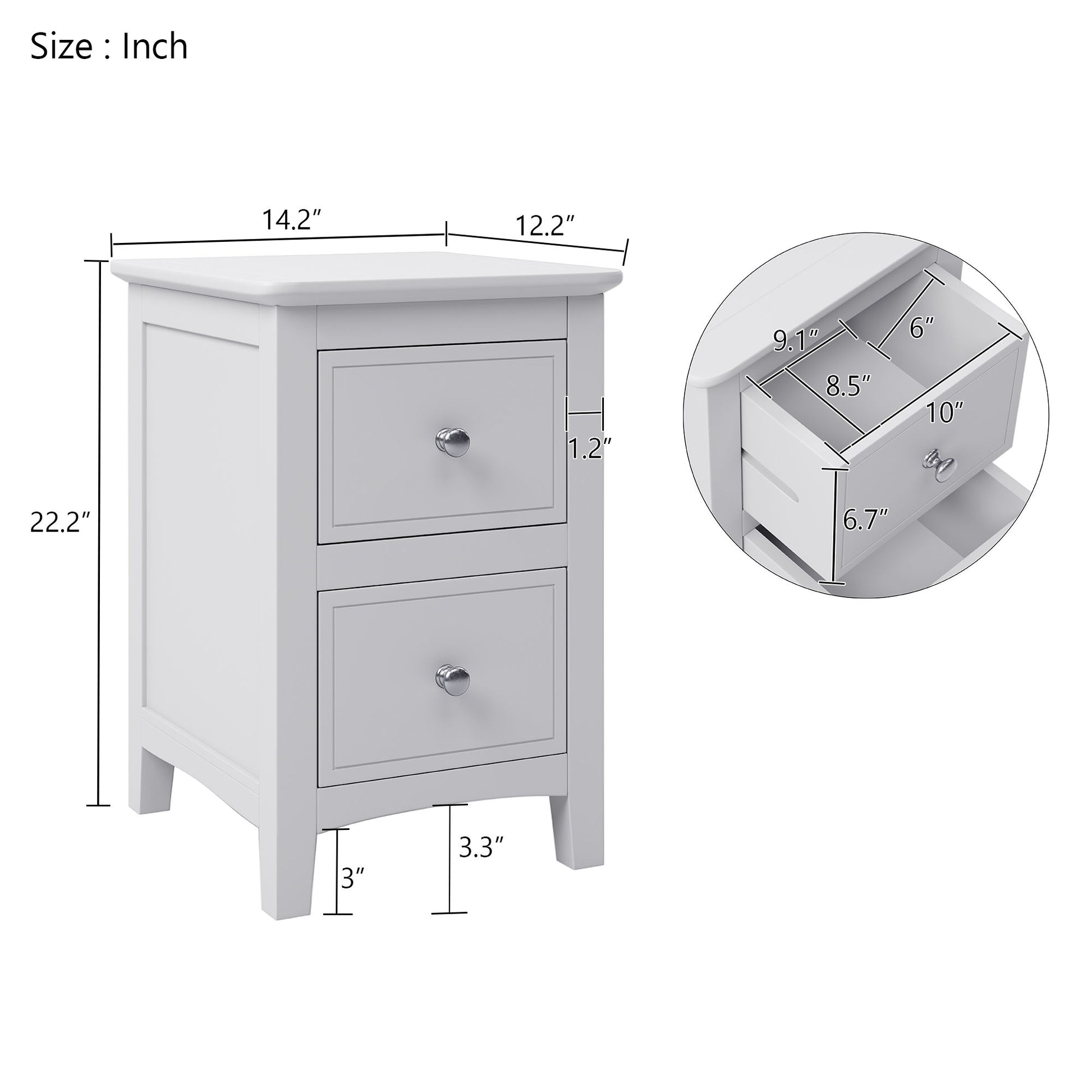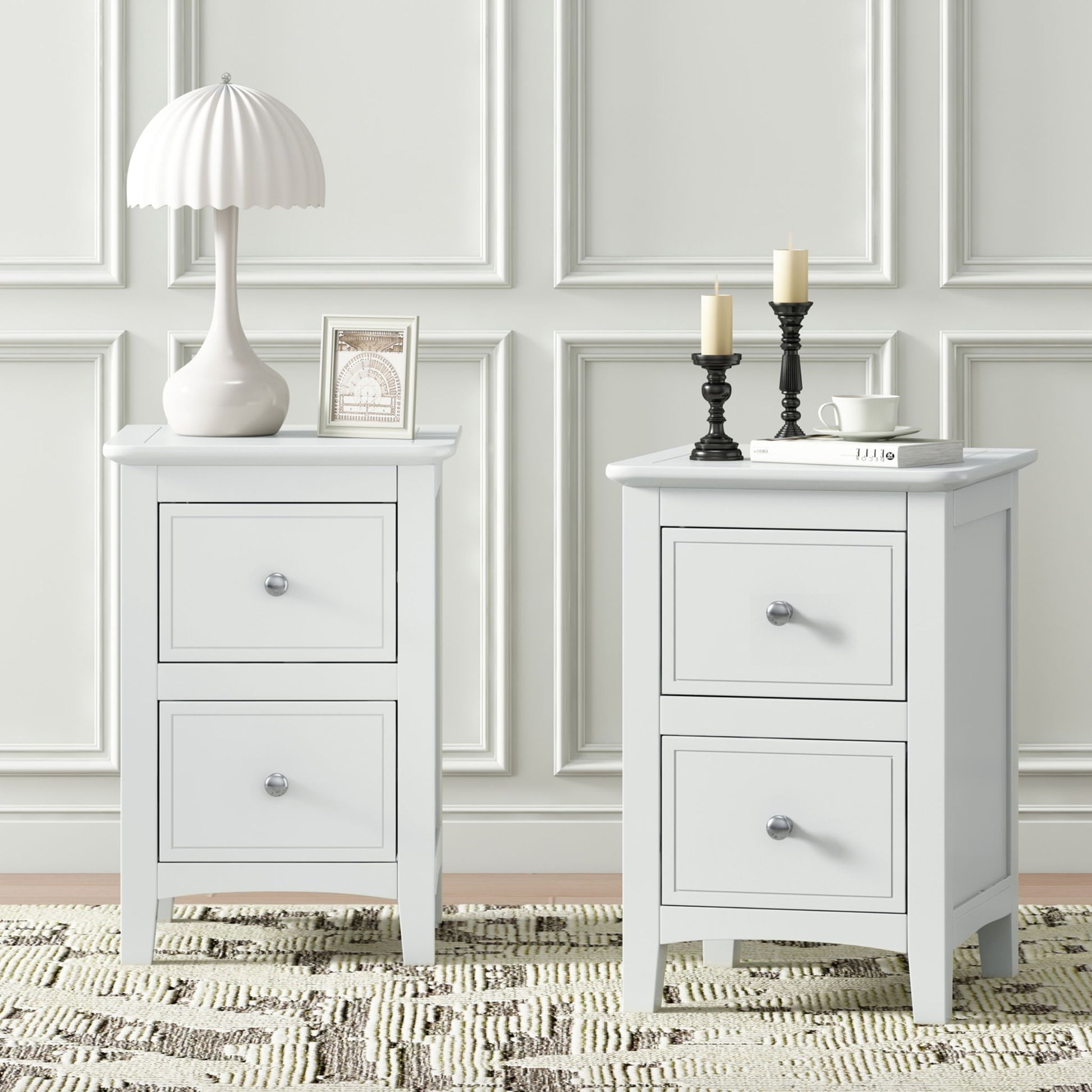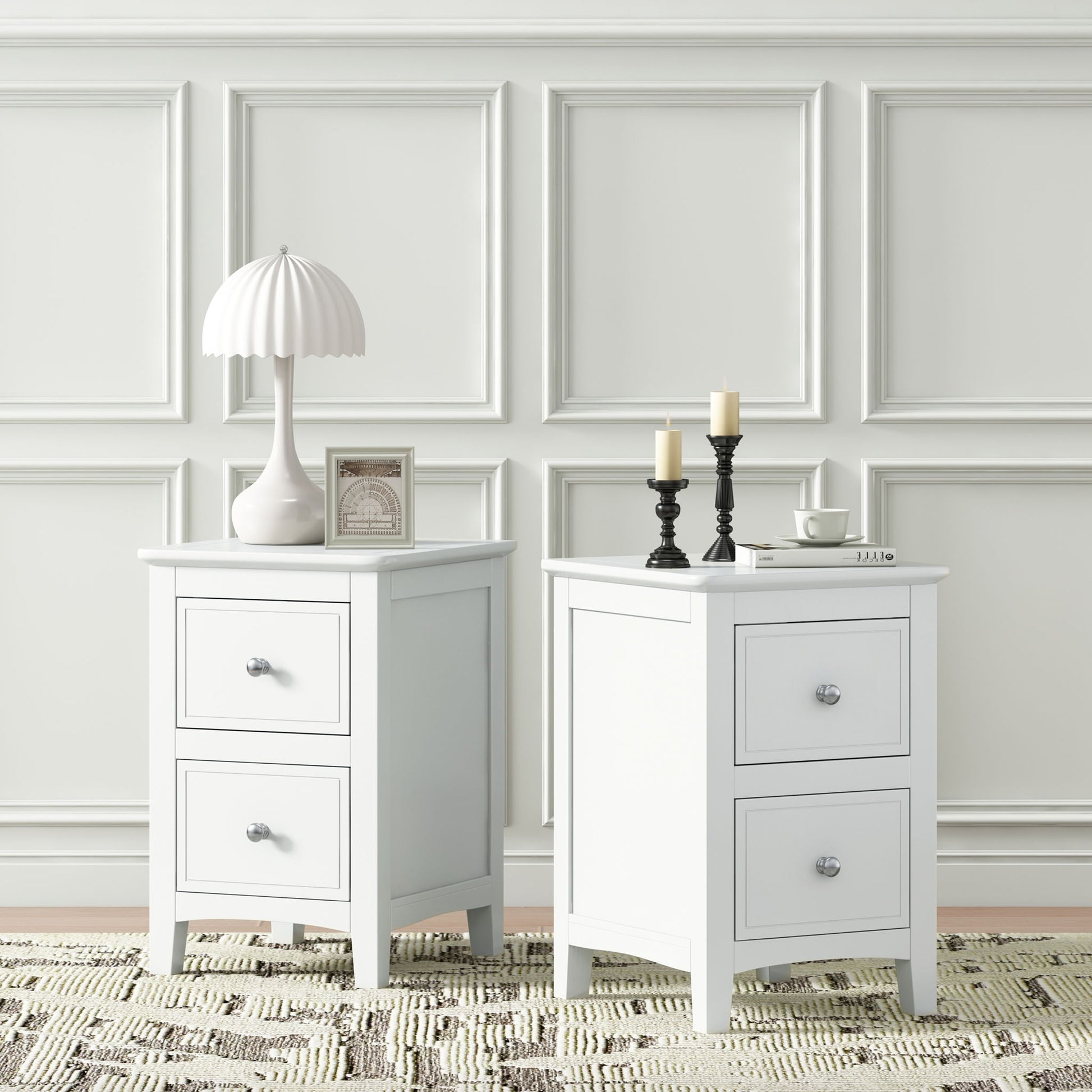 Modern Nightstand (Set of 2), Bed Side Table With 2 Drawers, End Side Table Double For Bedroom Living Room - White