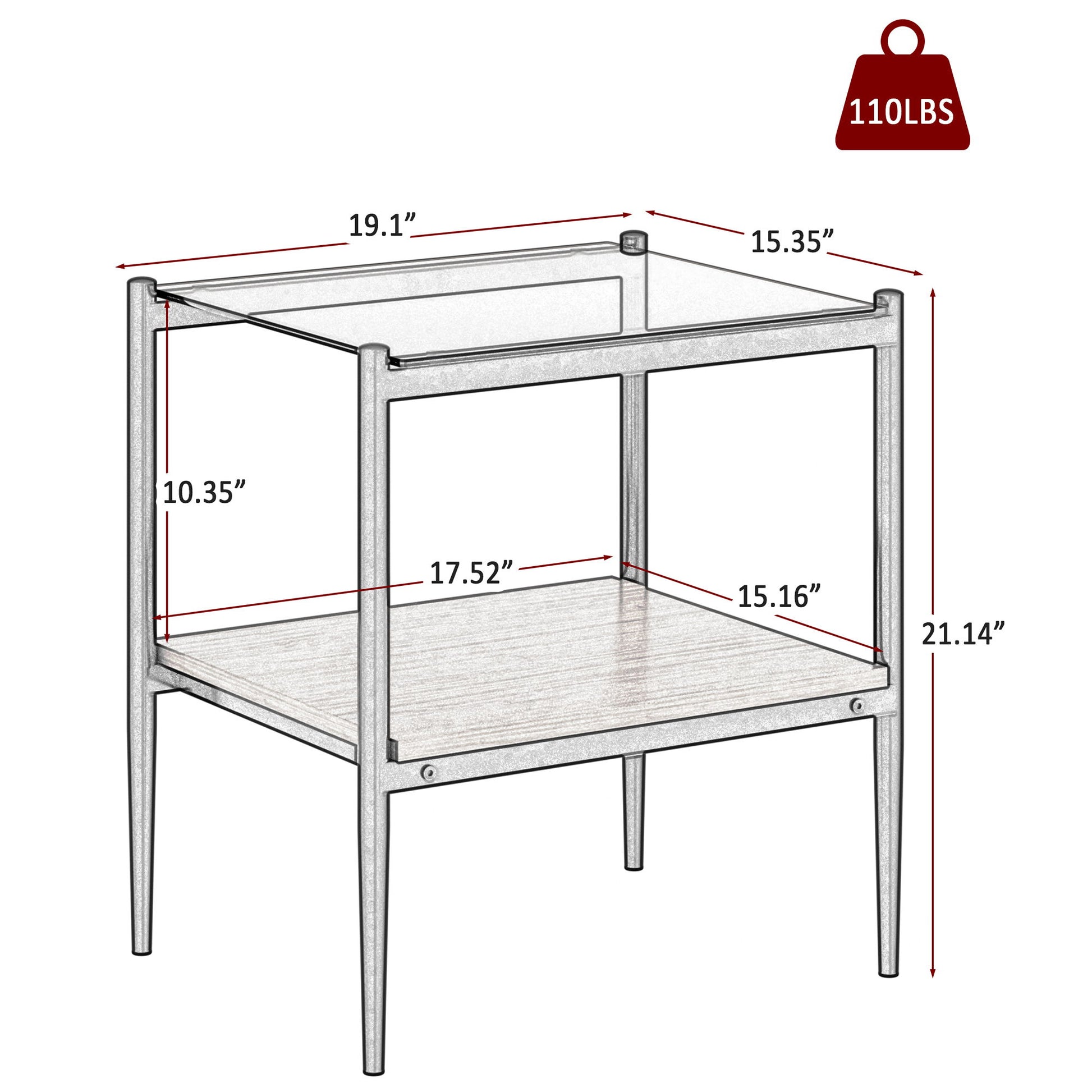 • Item Dimensions: 19.1"L x 15.35"W x 21.14"H. Load-bearing capacity of 110lbs.