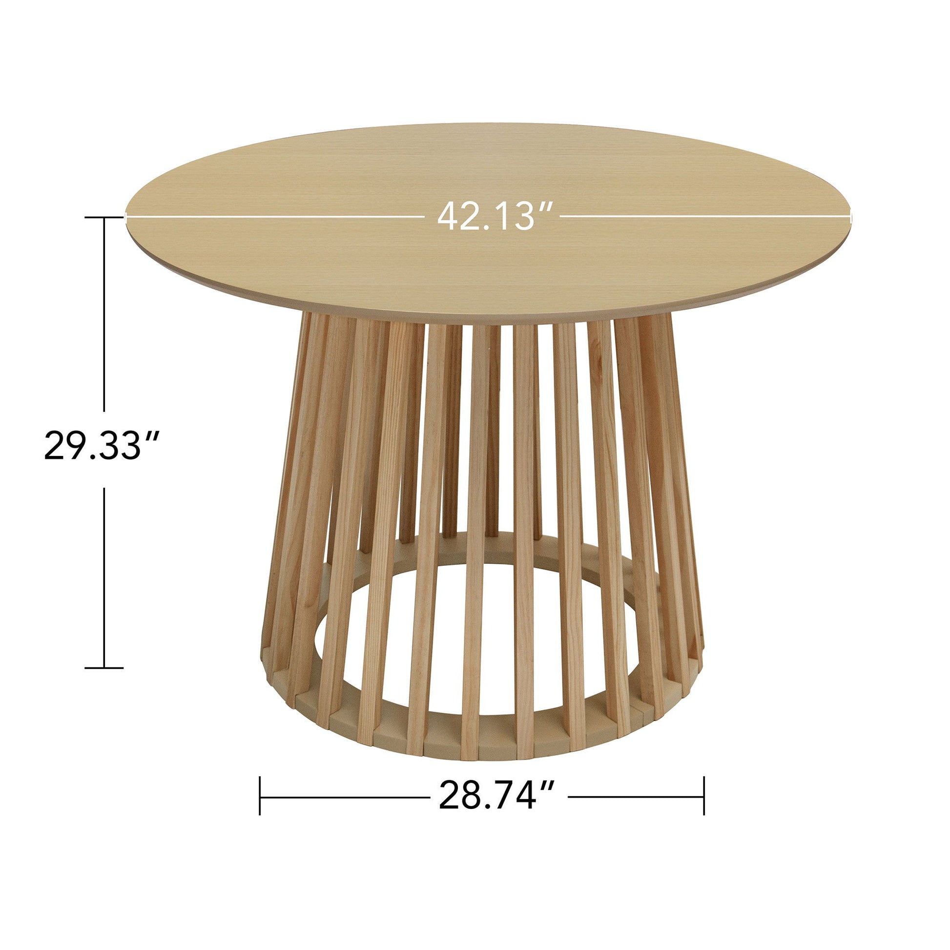 Modern Round Coffee Table With Grille Molding For Living Room, Bedroom, Or Balcony - Oak