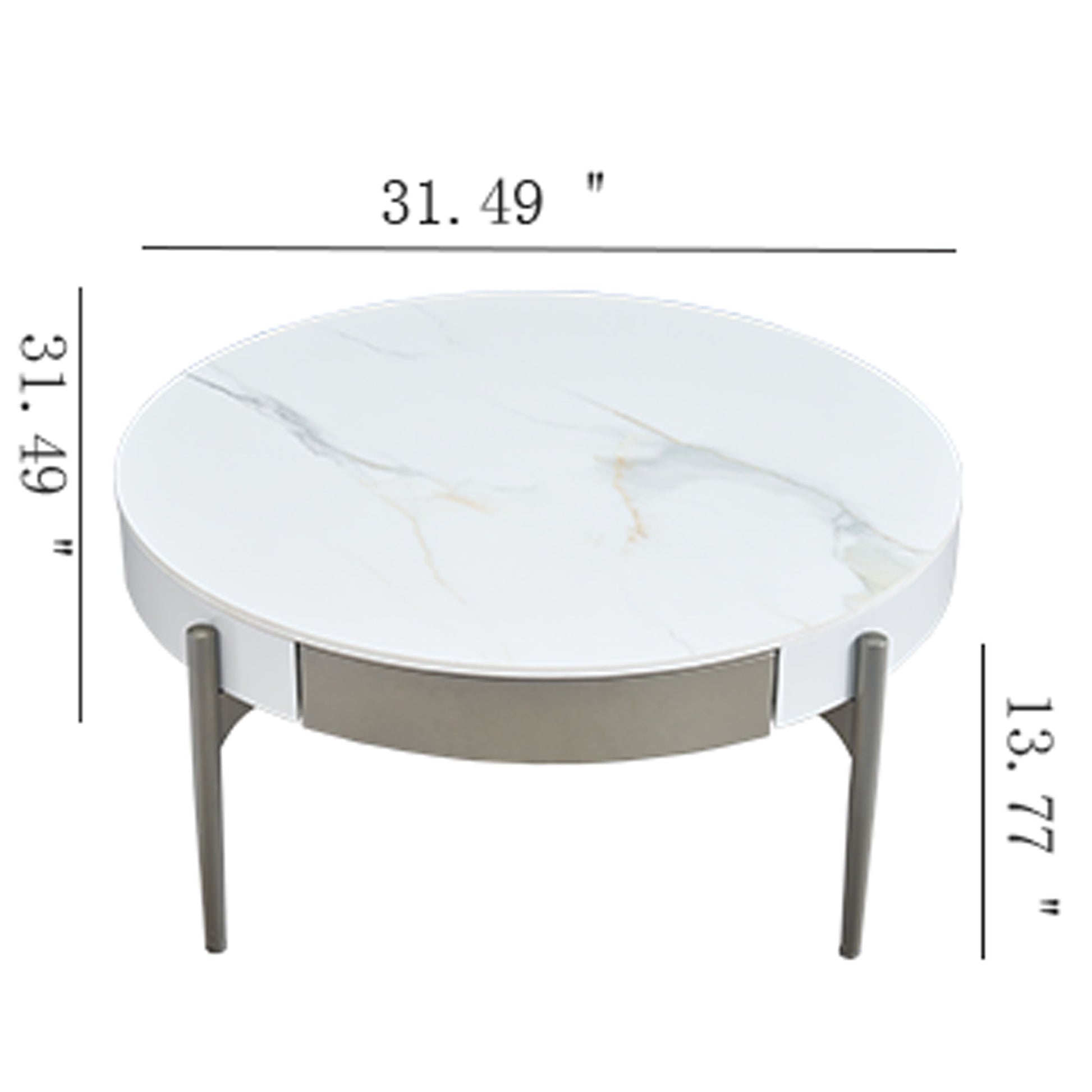 Modern Round Coffee Table With Storage Drawers Handcrafted Ceramic Inlay Tabletop 2 Tone Wood Legs Scandinavian Living Room Center Table - White / Gray