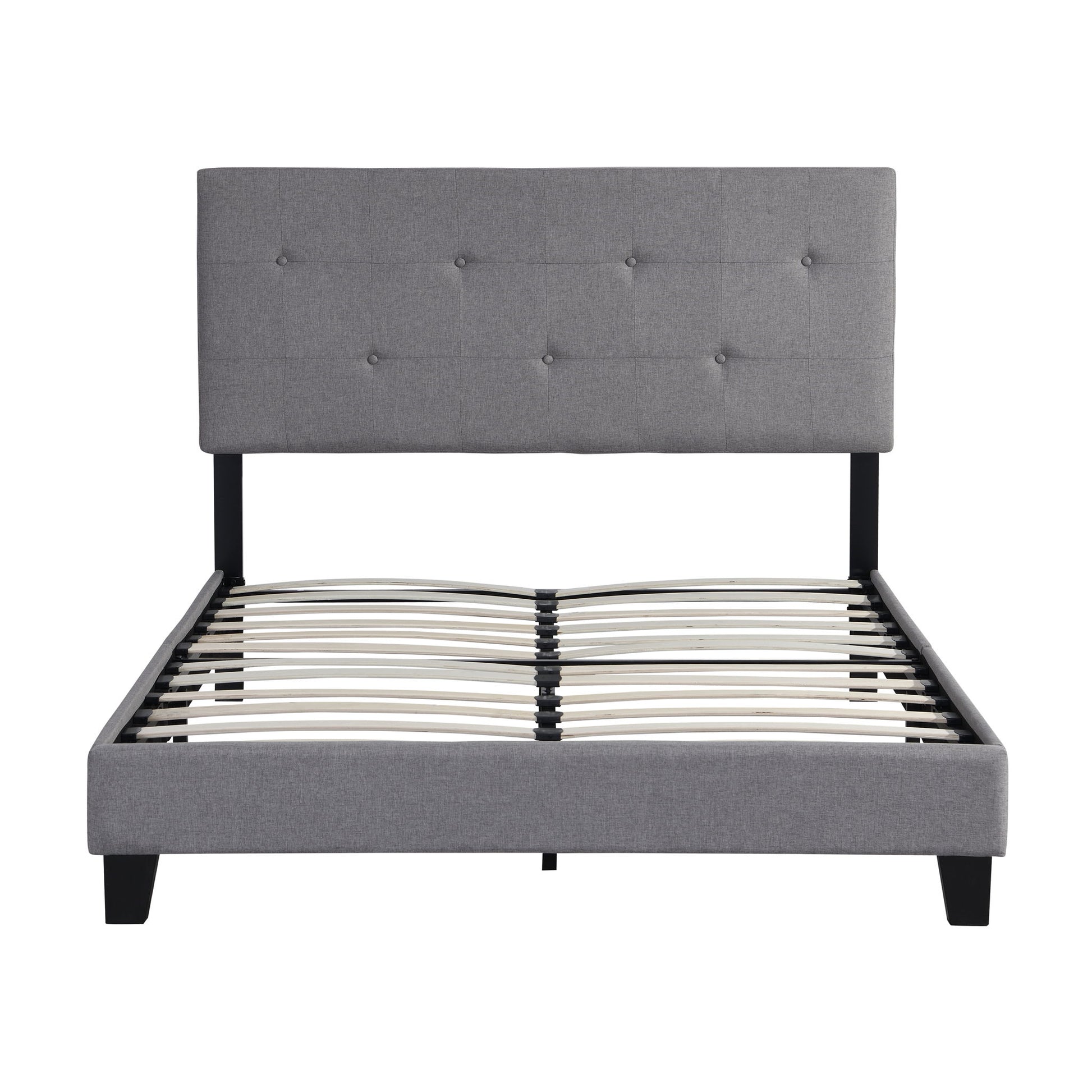 Full Size Upholstered Platform Bed Frame With Button Tufted Linen Headboard And Wood Slat Support - Gray