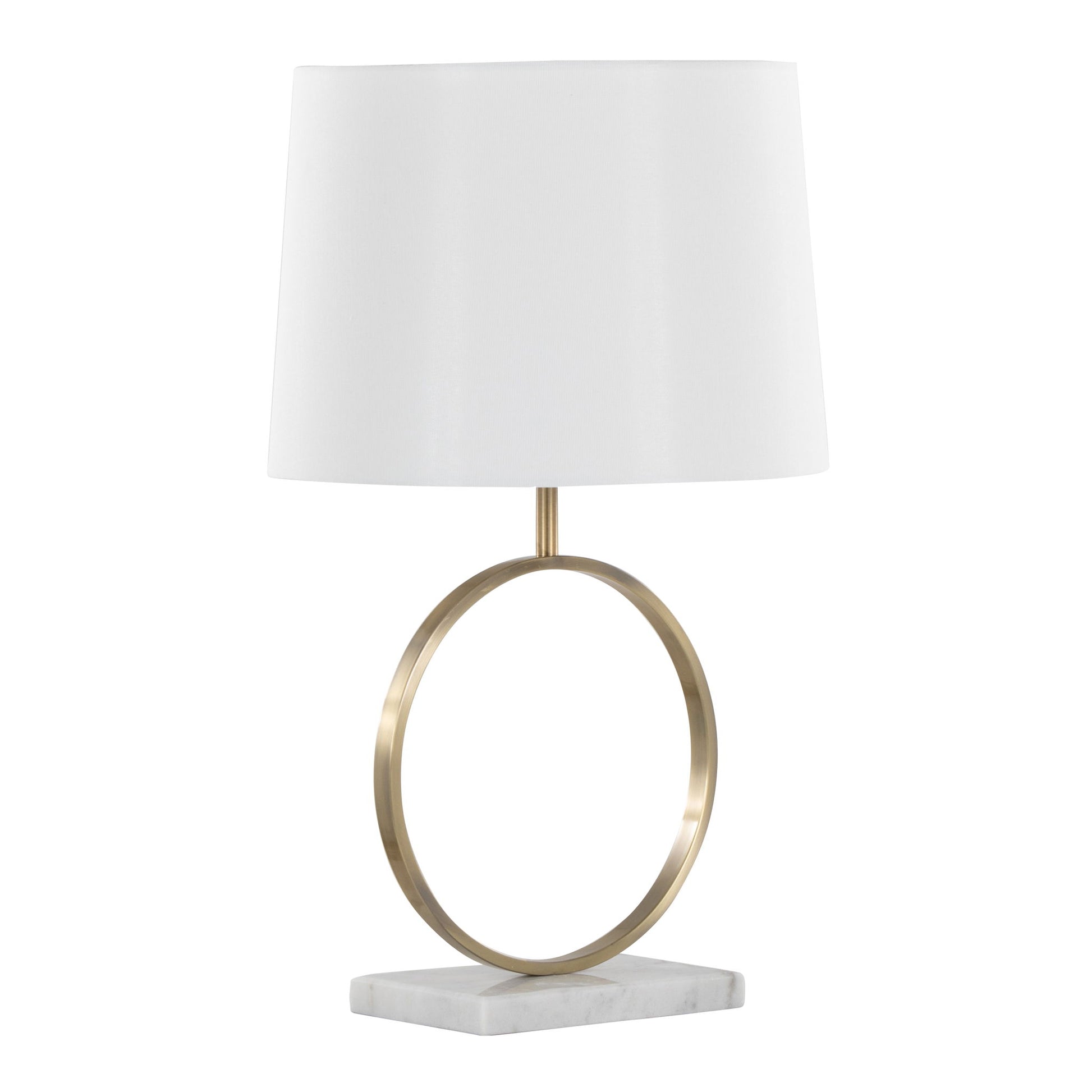 • Elegant Design: The Moon Table Lamp by LumiSource features a sophisticated design with a white marble base, circular gold metal frame, and a white linen empire shade, providing a modern and stylish accent to any desk or office area.