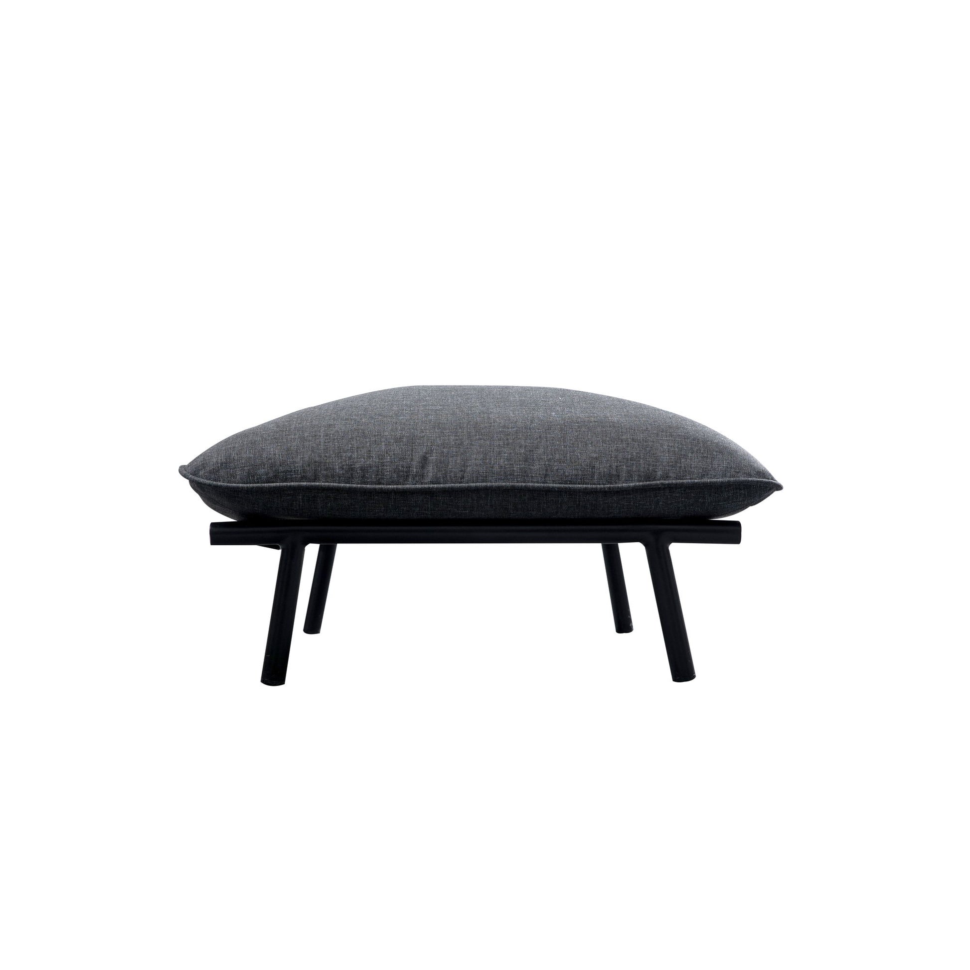 The Morgan outdoor ottoman brings alfresco comfort with understated elegance. Its overstuffed silhouette invites relaxation, while the sleek stainless-steel frame adds architectural interest. Upholstered in durable Olefin fabric, this low-profile piece features quick-dry foam for all-weather enjoyment. The armless design offers versatility in various seating arrangements.