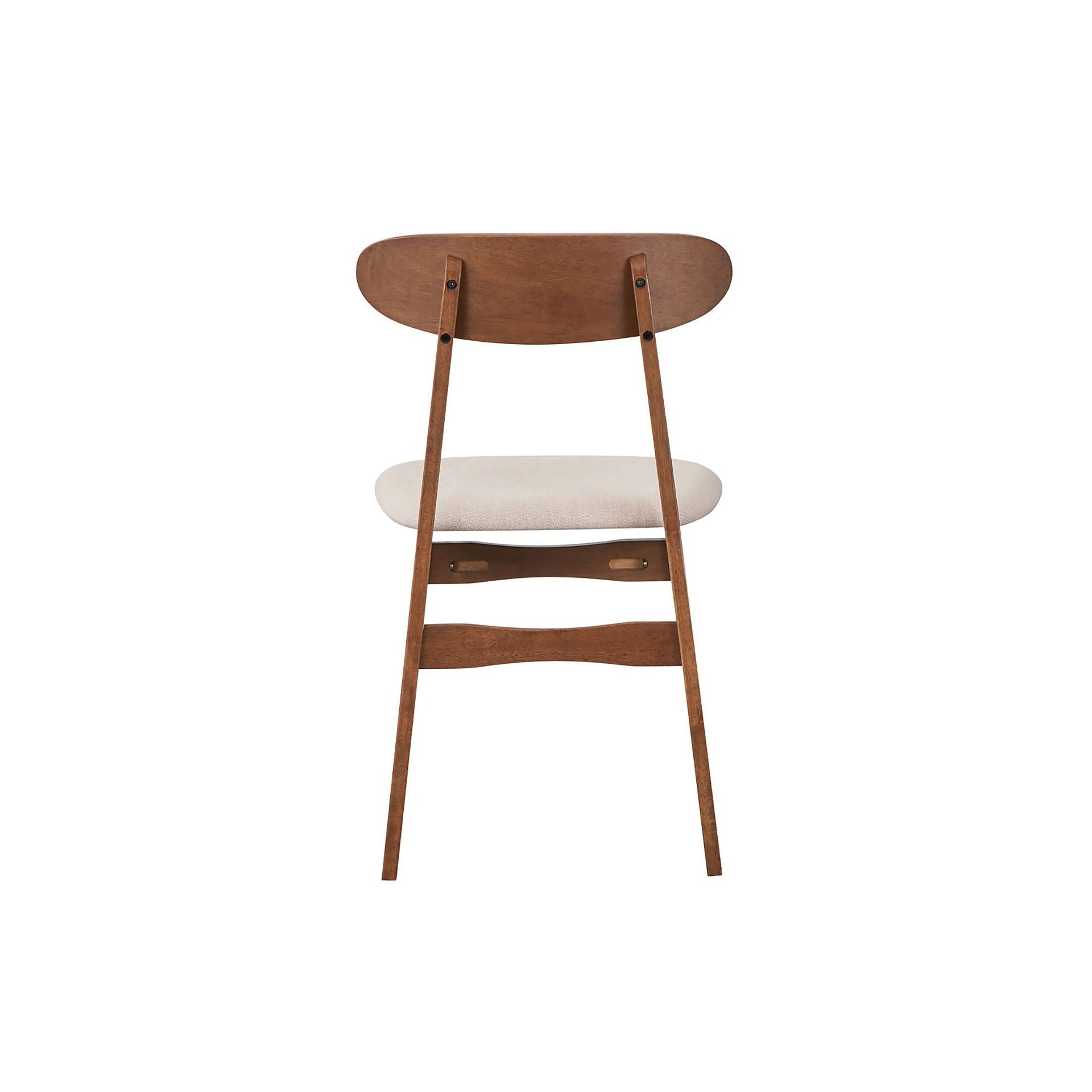 The New Classic Morocco Dining Chairs are a picture of Mid-Century Modern design with tapered legs, curved oval seatbacks, and classic walnut brown color. Easy care, natural 100% polyester foam cushions provide comfortable seating. A perfect accent chair in any room.