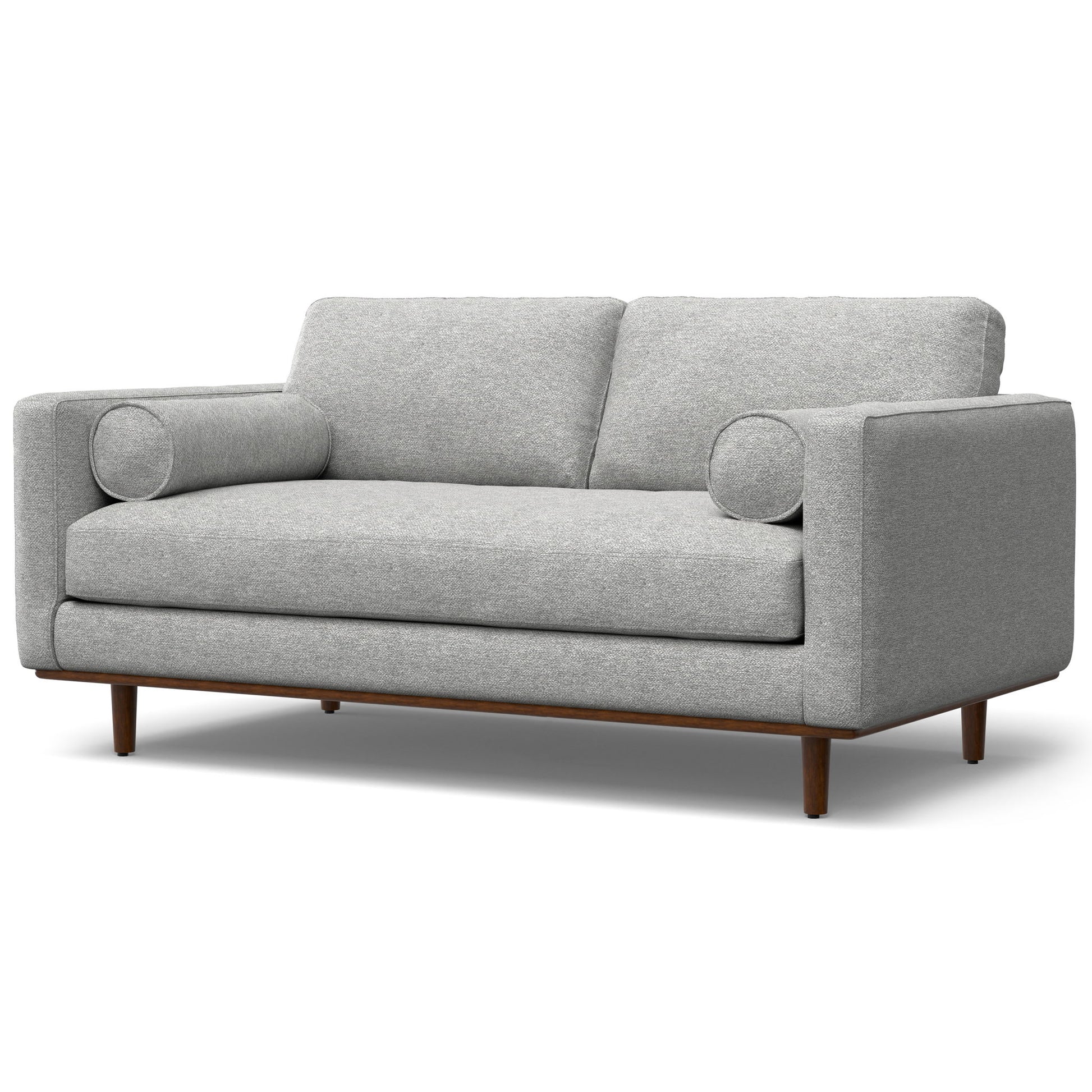 • Sturdy, corner-blocked frame made with solid and engineered woods includes high-quality, high-resilience webbing on the back to provide support; webbing and high-gauge sinuous springs under the seat to prevent sagging; and solid wood legs and plinth in a brown finish.