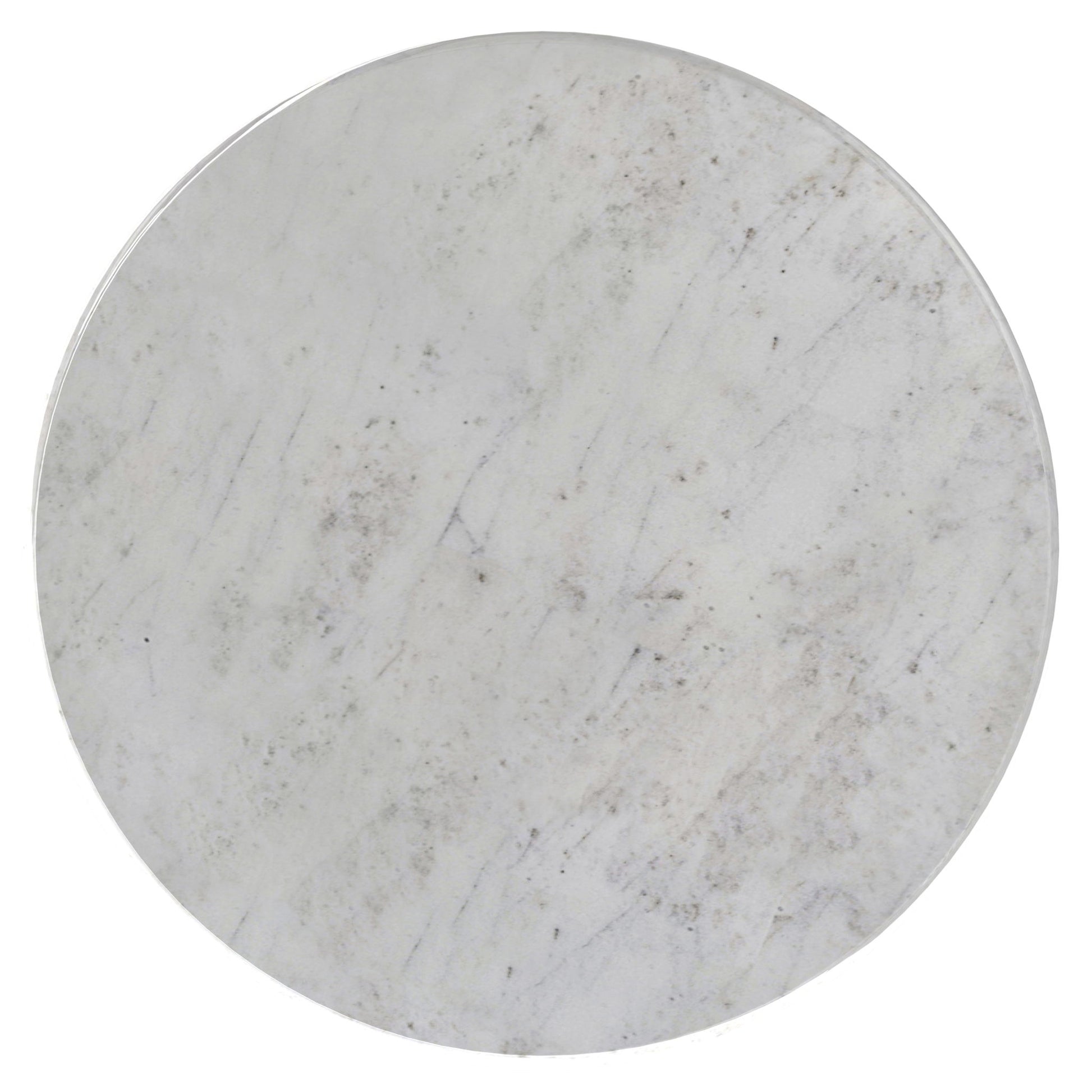 • Hand-finished powder-coated metal, flared base with an Antique Brass finish and White Marble tabletop.